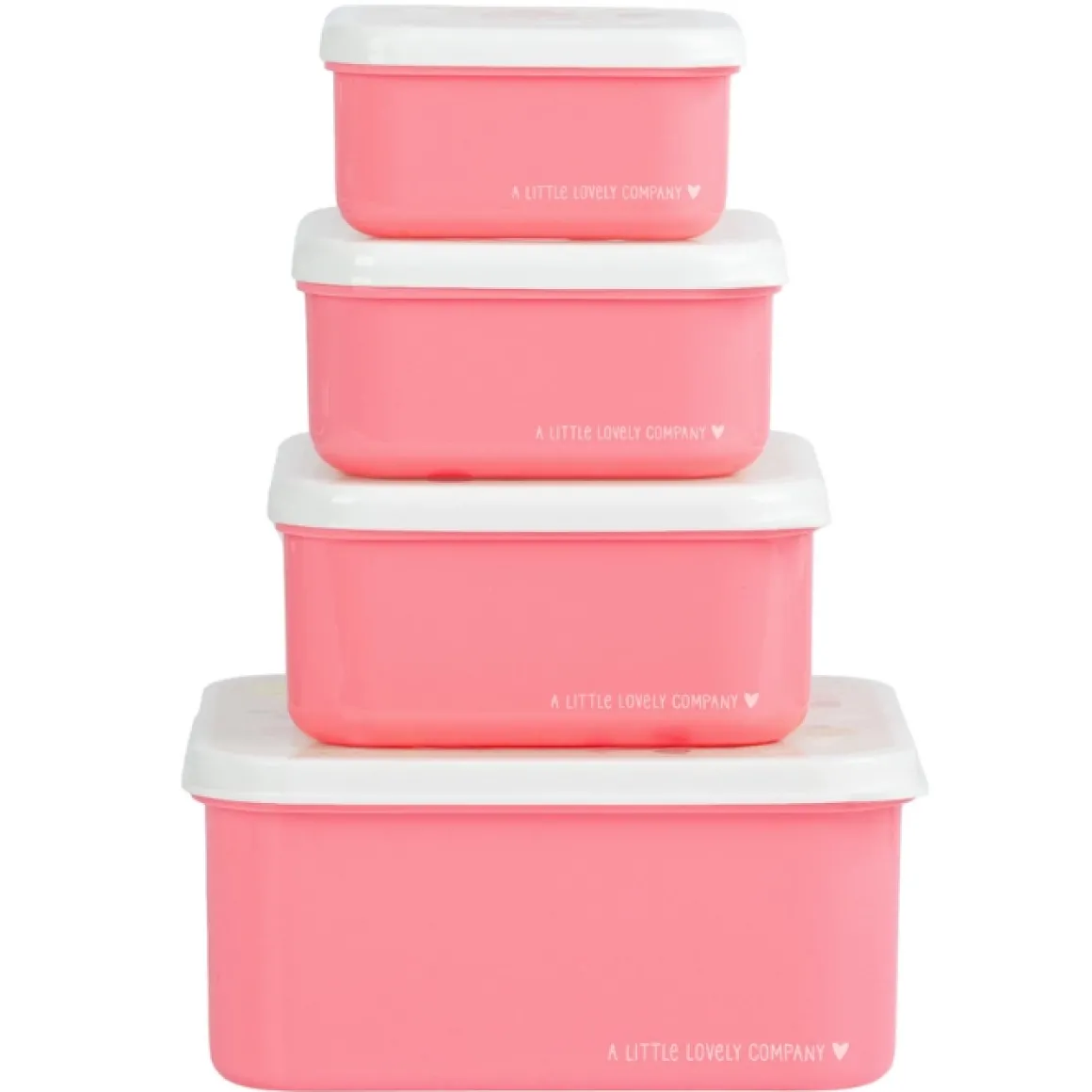Set Van Vier Lunch- En Snackdozen In Verschillende Maten In Bijpassende Designs. Geweldig Voor School, Onderweg En Ideaal Om Thuis Snacks Te Bewaren. Door Het Lipje Aan De Zijkant Van Het Deksel Zijn Ze Gemakkelijk Te Openen En Te Sluiten En De Doosjes Stapelen In Elkaar Om Ze Gemakkelijk Op Te Bergen.
