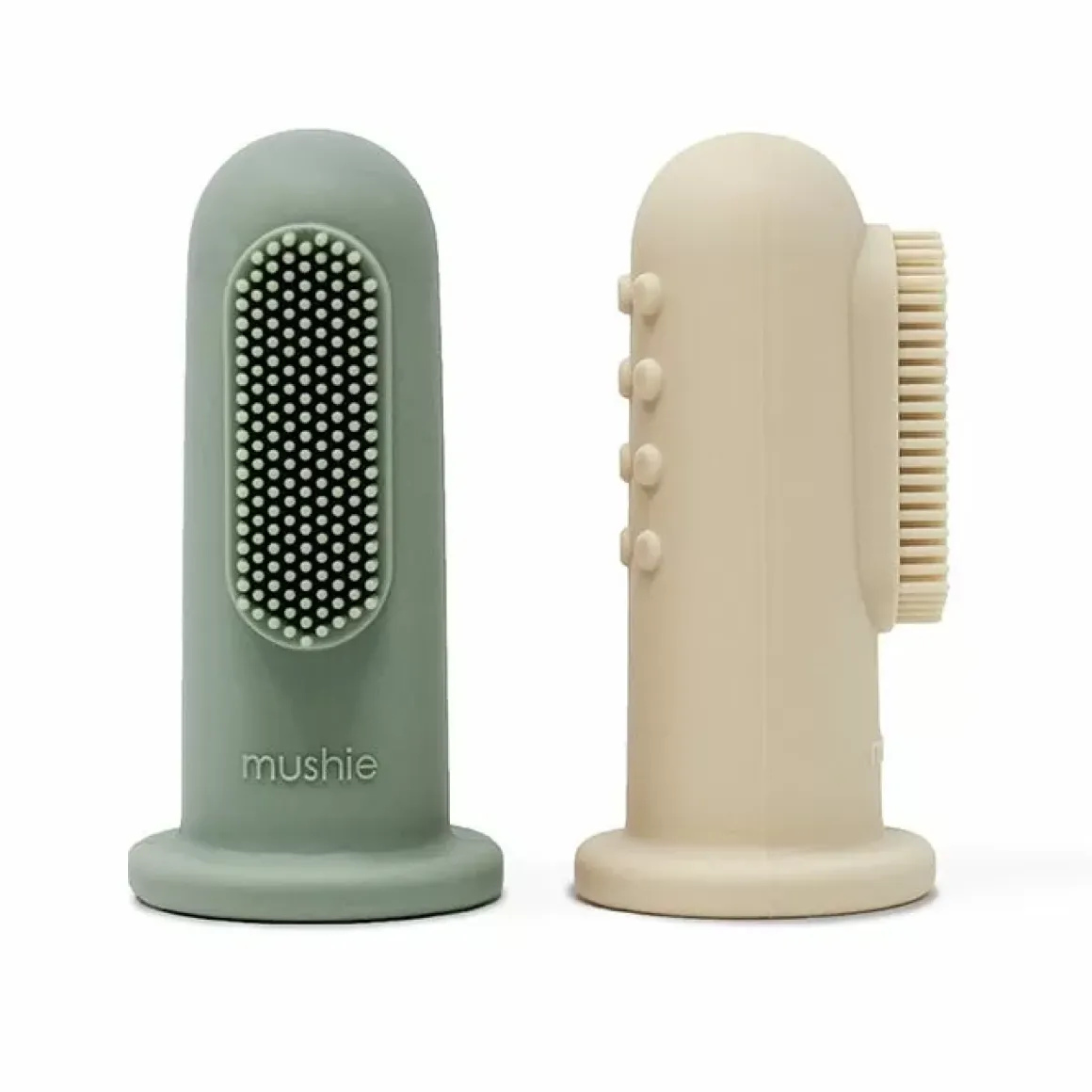Komen De Eerste Tandjes Van Je Baby Door? Begin Dan Met Poetsen Met De Baby Tandenborstel Shifting Sand En Cambridge Blue Van Mushie &Amp; Co.