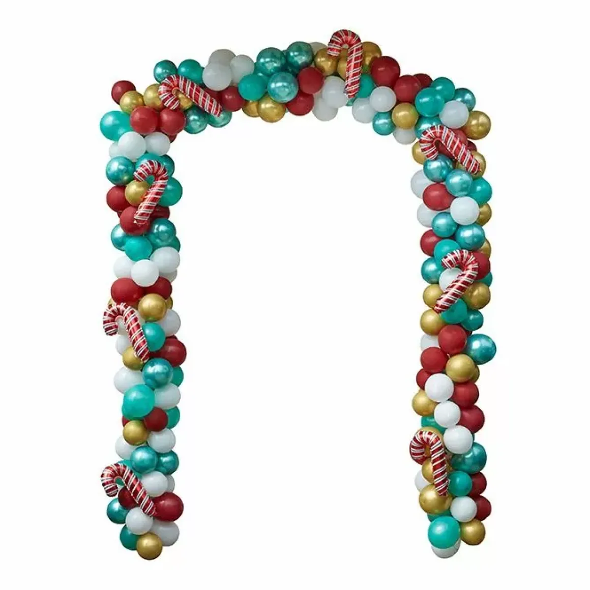 Merry Everything! Creƫer Een Fantastisch Ballonnenboog Bij Het Entree Om De Gasten Te Verbazen Met Deze Ballonnenboog In Traditionele Kleuren Met Rode Zuurstokken!