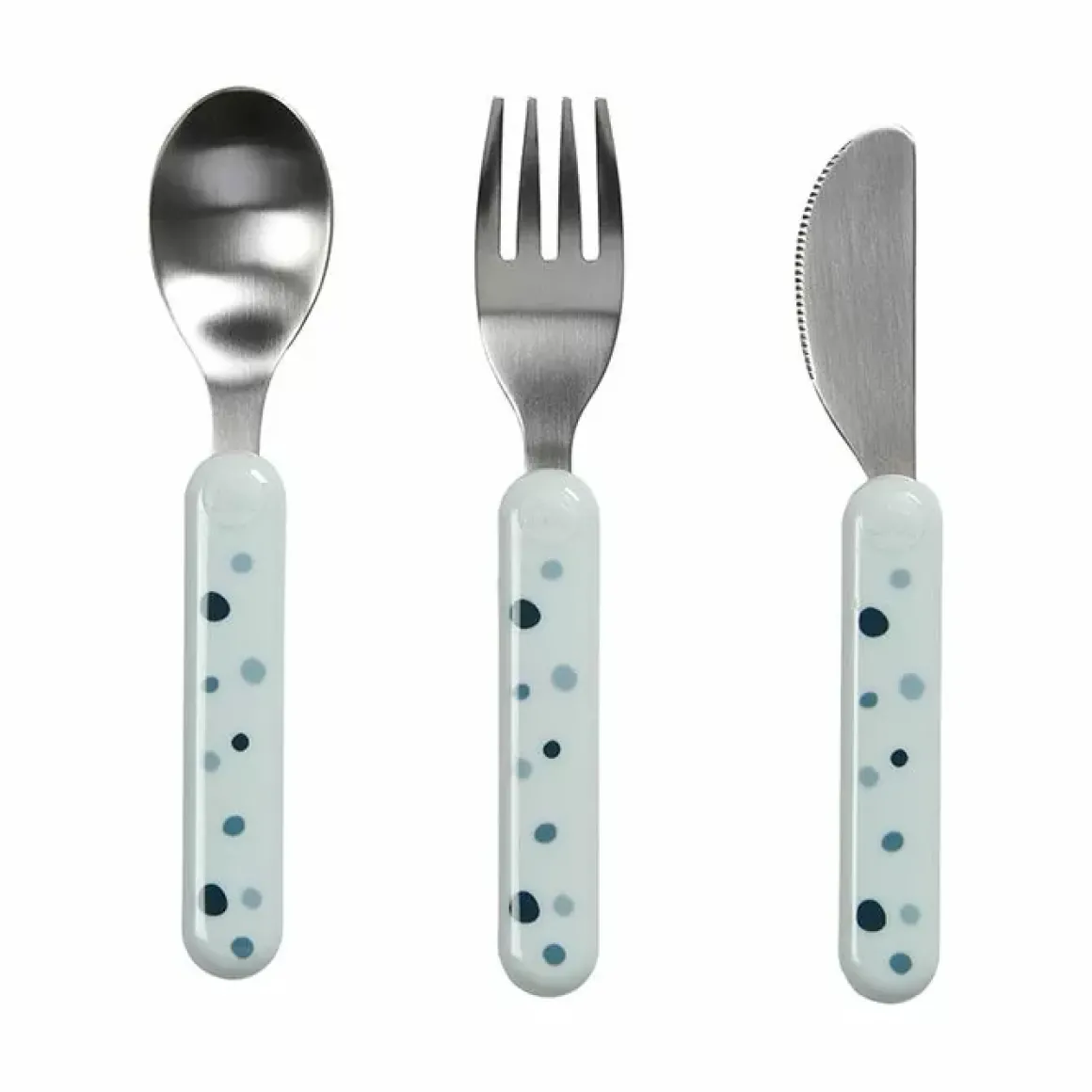 Leer Je Kindje Zelfstandig Eten Met De Bestekset Dreamy Dots Blauw Van Done By Deer.