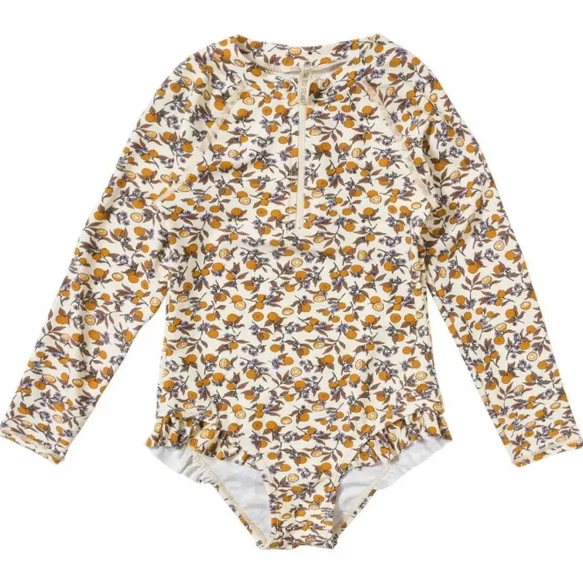An Orange A Day Keeps The Doctor Away Met Het Salted Stories Badpak Lange Mouw Safi L’Orange! Dit Schattige Badpak Met Lange Mouwen Is Verkrijgbaar In Maat 62/68 Tot 134/140 En Biedt Volledige Gevoerdheid, Zachte Stof En Sneldrogend Vermogen Na Het Zwemmen. De Bodysuit Is Voorzien Van Drukknopen Bij Het Kruis, Wat Handig Is Voor Het Verschonen Van Luiers Of Toiletbezoeken. Met Upf50+ Bescherming Biedt Dit Badpak Tot 98% Blokkering Van Uv-Straling, Waardoor Je Kindje Beter Beschermd Is Tegen De Zon. De Plastic Rits Met Kin-Beschermer Wordt Niet Warm Op De Huid Door De Zon. Het Badpak Valt Op Door De Sinaasappelprint Met Subtiele Bloemetjes En De Ruffles Net Onder De Heup. Laat Je Kleintje Stralen En Genieten Van Zwemplezier Met Dit Functionele En Schattige Badpak!