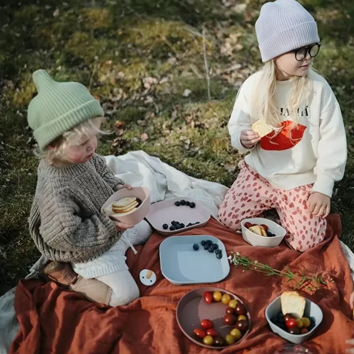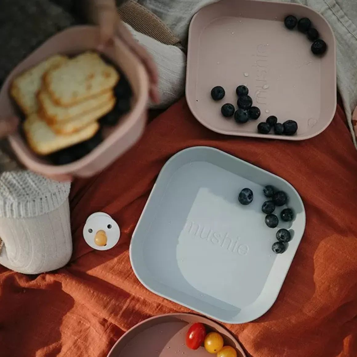 Aan Tafel Met Deze Stijlvolle En Eenvoudige Vierkante Cloud Borden Van Mushie. De Borden Hebben Afgeronde Hoeken Met Een Opstaande Rand, Waardoor Ze Perfect Zijn Voor Peuters En Kleuters.