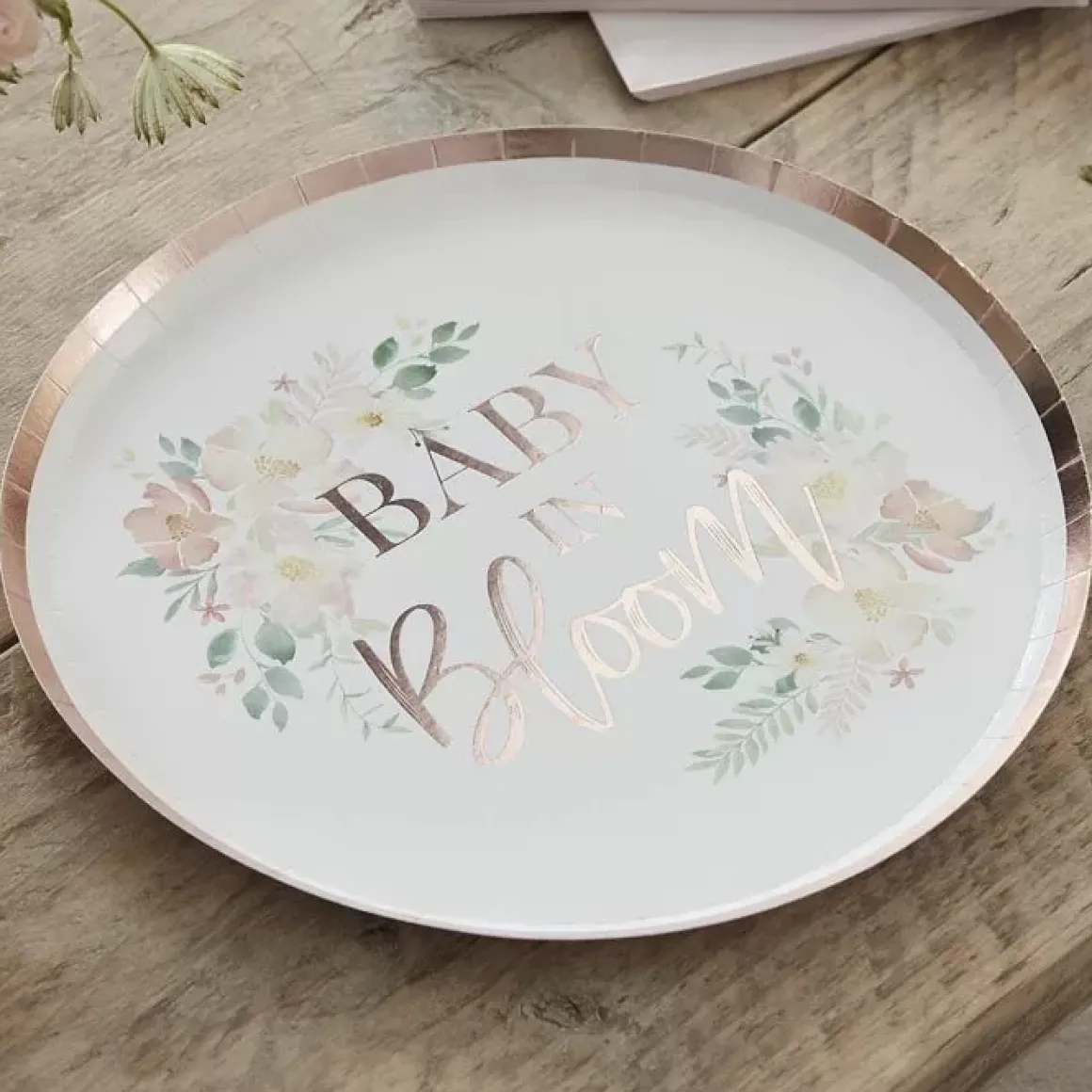 Deze Elegante Bordjes Vormen De Perfecte Setting Op Tafel Tijdens De Baby In Bloom Babyshower. In De Verpakking Zitten In Totaal 8 Borden.
