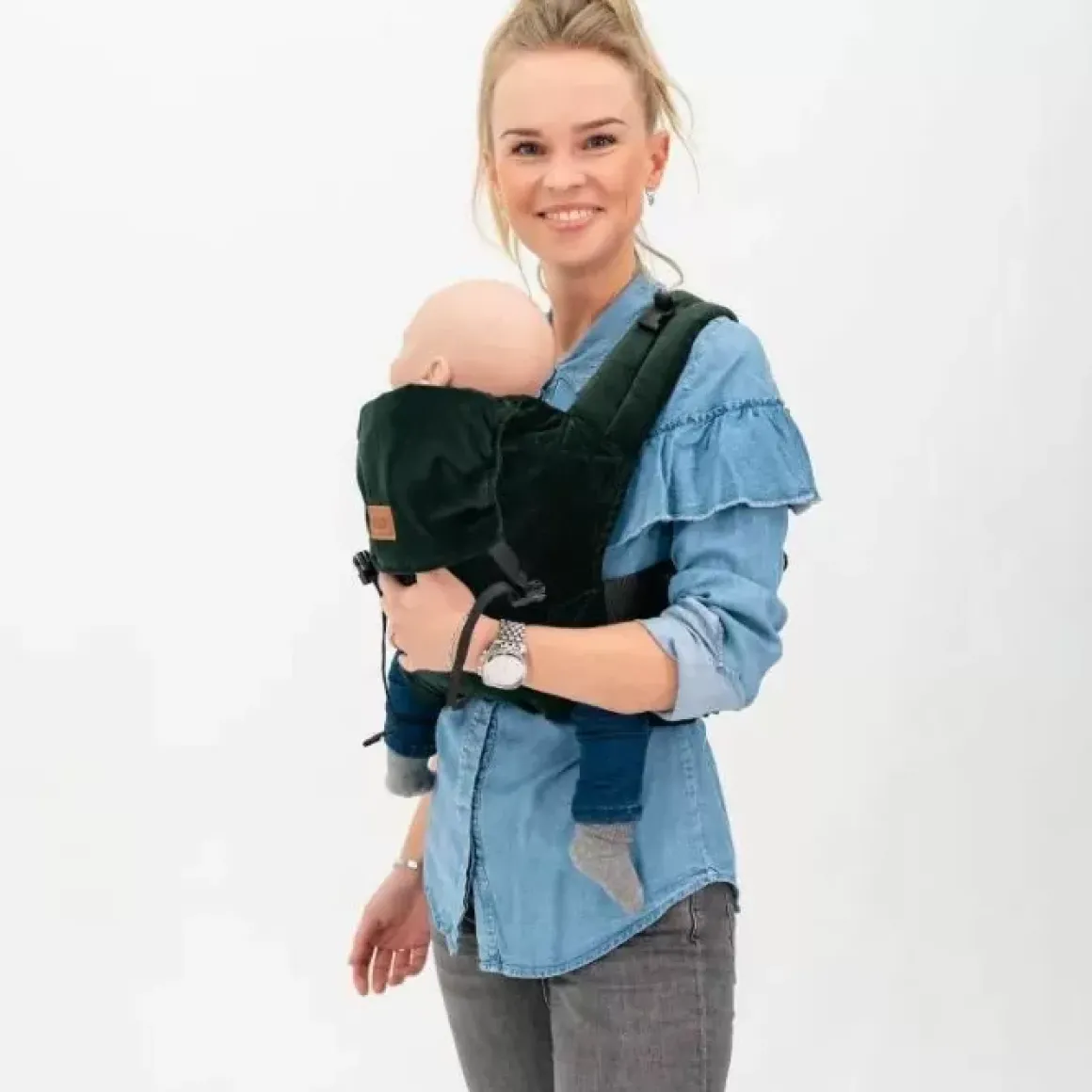 Op Zoek Naar Een Hippe Betaalbare Draagzak? De Click Carrier Classic Velvet Bottle Green Van Bykay Is Een Ergonomische Draagzak Met Clips, Waarin Je Baby Op Een Ergonomische Manier Gedragen Kan Worden.