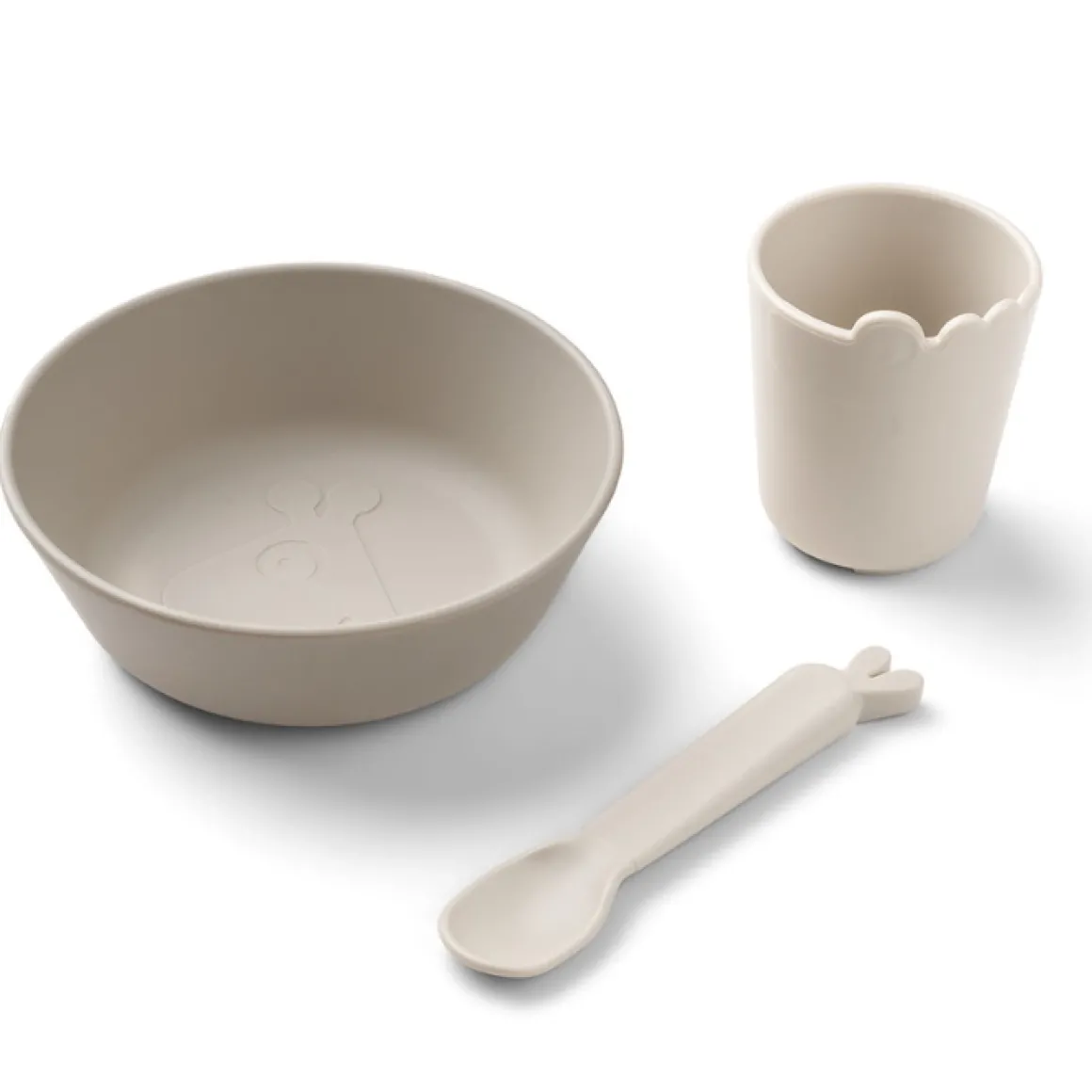 De Kiddish Eerste Maaltijdset Is Perfect Voor Kleintjes Die De Wereld Van Voedsel Beginnen Te Verkennen. De Set Bevat Een Raffi Kom, Croco Beker En Een Lalee Lepel, Allemaal Onbreekbaar En Ontworpen Voor Dagelijks Gebruik. Geschikt Voor De Magnetron En Vaatwasser. Het Duurzame Kinderservies Is Gemaakt In Denemarken. Na Talloze Gezinsmaaltijden, Feestjes En Picknicks Kan Het Servies Worden Gesorteerd Als Hard Plastic En Gerecycled Worden Om Nieuwe Producten Voor Het Dagelijks Leven Te Produceren. Raffi En Croco Zullen Je Kleintje Gezelschap Houden In Deze Schattige Set In Zachte Zandkleuren. De Dinerset Heeft Een Zijdezacht Oppervlak En Past Bij De Rest Van De Kiddish-Collectie.