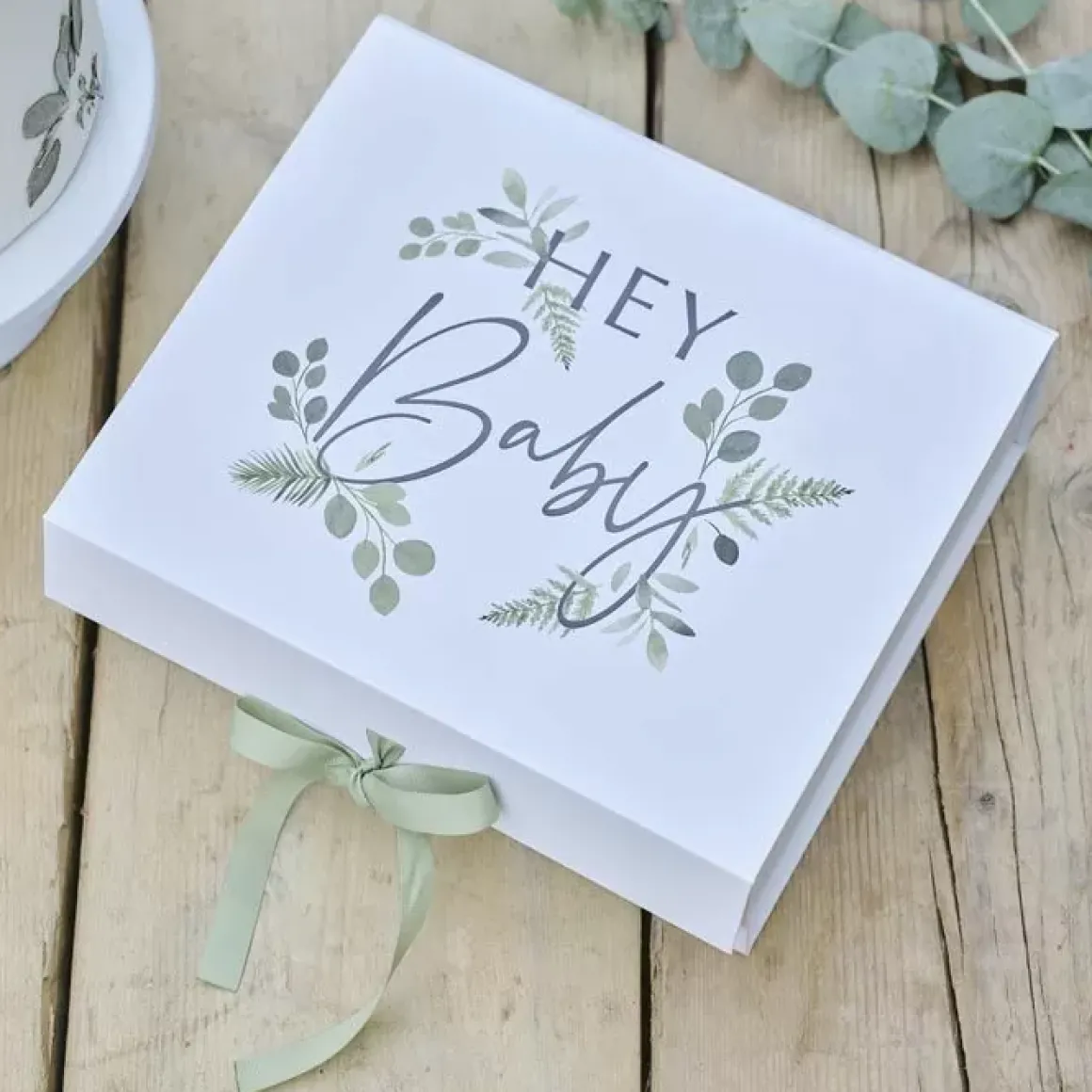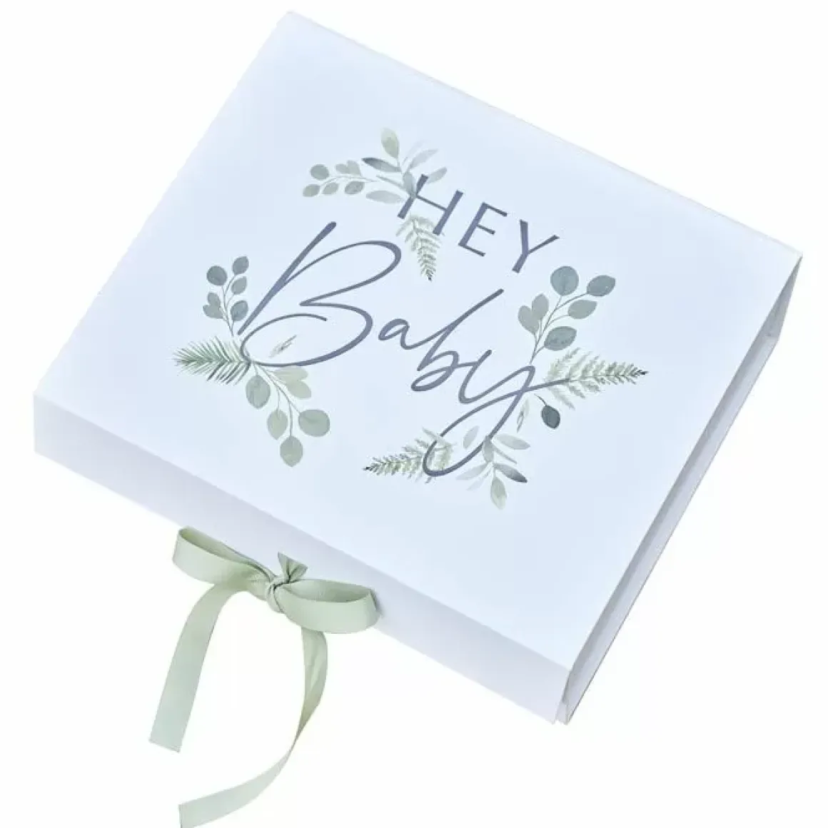 Deze Trendy ‘Hey Baby’ Cadeauverpakking Heeft Een Prachtige Print Met Botanische Details. Wij Denken Dat Deze Doos Een Speciaal Plekje Krijgt!