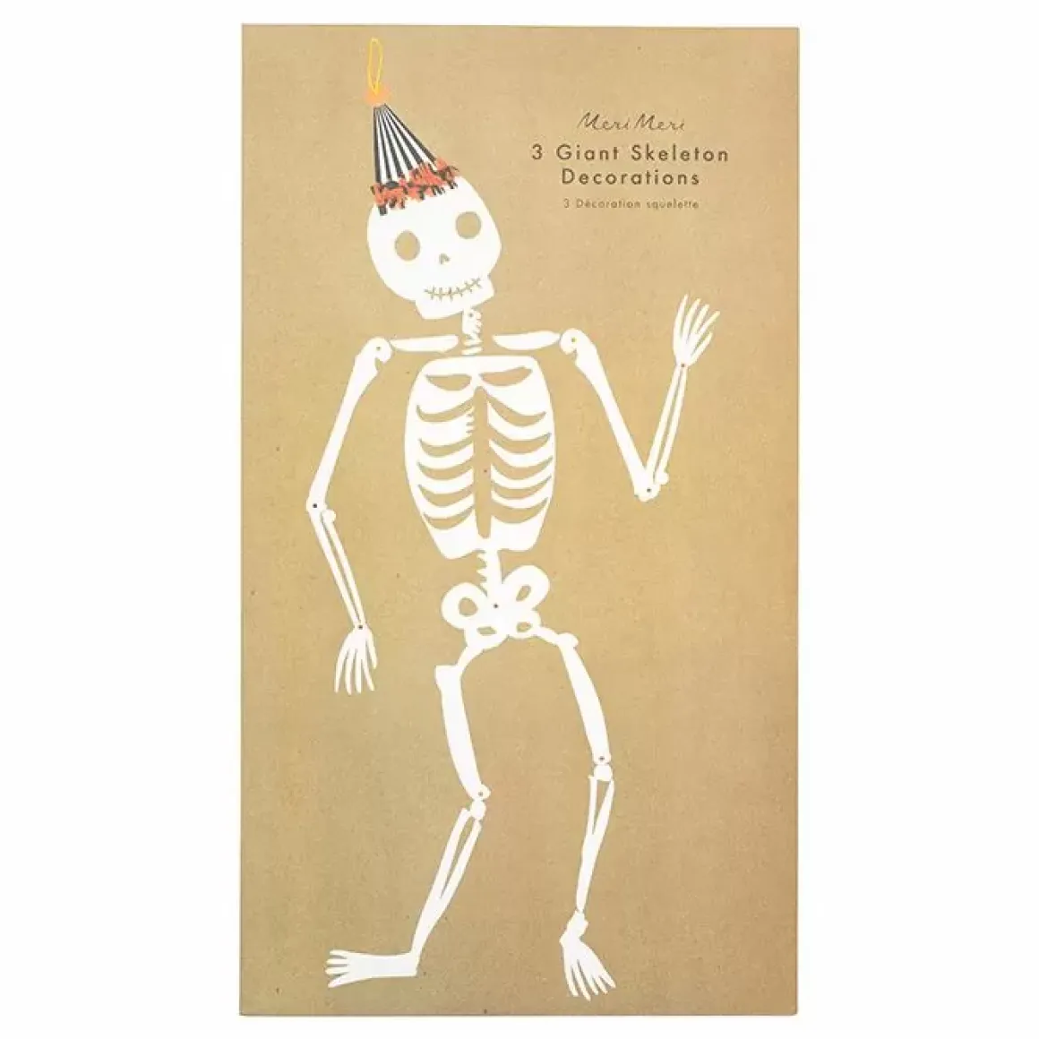 De Hangdecoratie Skeletten Vintage Halloween (3St) Van Meri Meri Zijn Gedeeltelijk Gemonteerd. Met Bijgeleverde Instructies Maak Jij Ze Snel Compleet. De Botten Worden Bij Elkaar Gehouden Met Goudkleurige Sluitingen. De Skeletten Hebben Zwarte En Oranje Crêpepapier Franjes Op De Hoedjes Voor Een Feestelijk Effect.