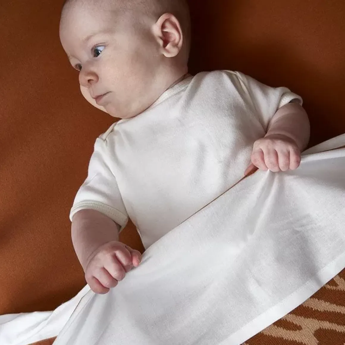 Wat Zijn Ze Lief Hé Als Ze Slapen! Daar Kun Je Uren Naar Staren, Dat Lieve Gezichtje Op Het Zachte Jersey Hoeslakentje Van Meyco. Dit Camel Kleurige Hoeslaken Voor In De Wieg Is Gemaakt Van Jersey Katoen En Daardoor Ademend (Ook Geschikt Voor Aerosleep).