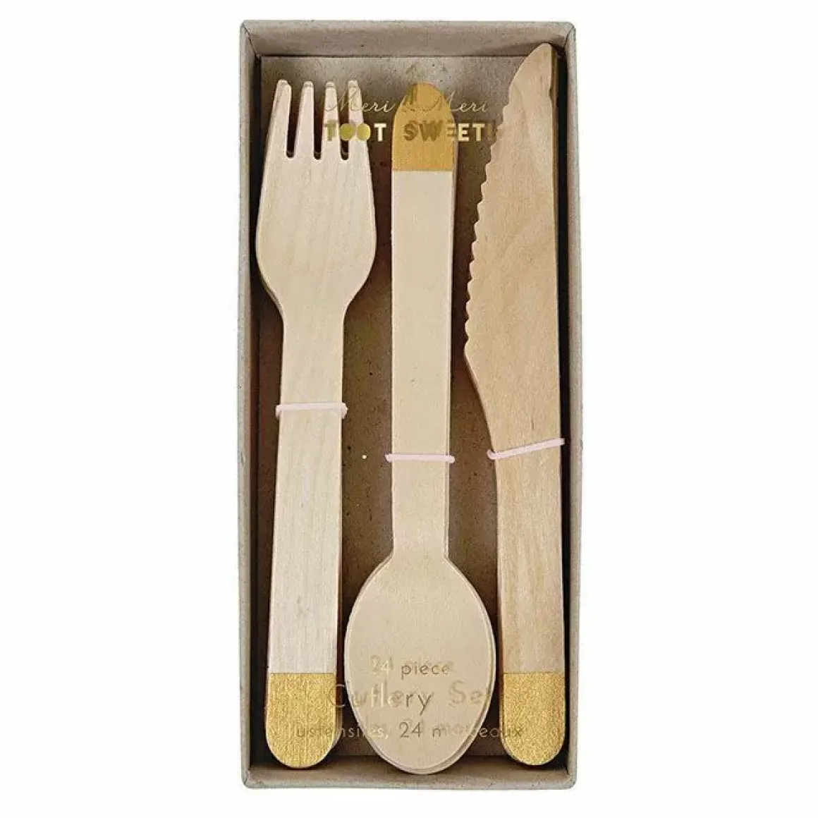 Het Stevige Houten Bestek Van Meri Meri Heeft Een Golden Touch En Ziet Het Er Altijd Chic Uit Op Een Feestje, Picknick Of Barbecue.
