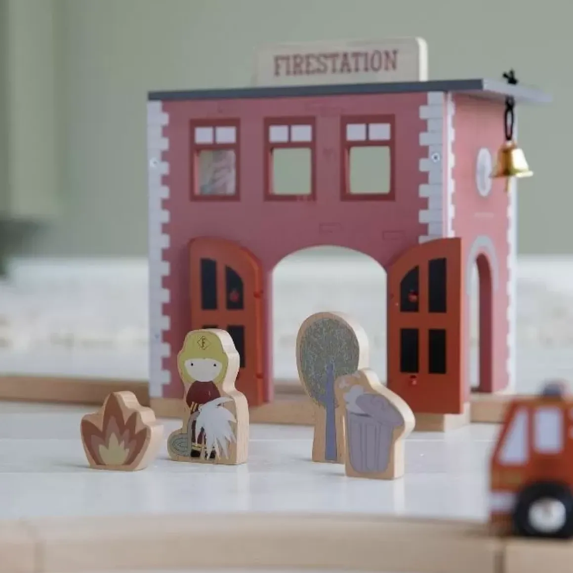 Deze Houten Kazerne Is De Perfect Aanvulling Op De Xxl Treinbaan Van Little Dutch, Maar Kan Ook Heel Leuk Los Mee Gespeeld Worden. Help De Brandweer De Brandjes Blussen! Luid De Bel, Open De Deuren En Laat De Brandweer Wagen Erdoor.