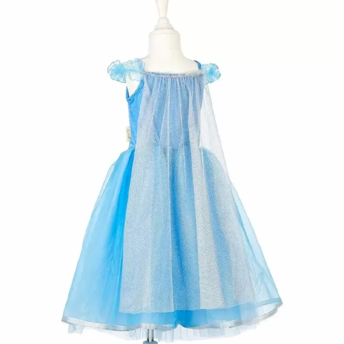 De Blauwe Jurk Heeft Een Opvallende Zilveren Ijs Sterren Print Op De Tule Rok! Het Lijfje Is Van Stretch Velour, Waardoor Je De Jurk Gemakkelijk Aan En Uit Kunt Trekken. De Bovenkant Heeft Ruches En De Achterkant Een Lange Zwierige Cape. Dit Jurkje Is Beschikbaar Voor Kinderen Tussen De 3-4 Jaar En 5-7 Jaar.