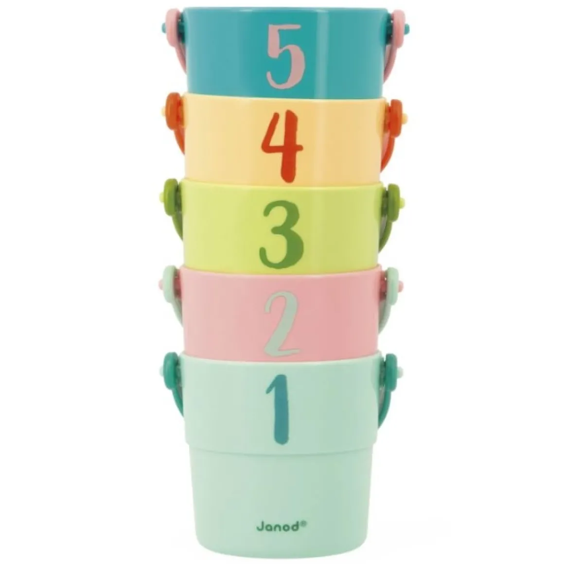 Beleef De Grootste Lol Met Deze 5 Gekleurde Bademmers Van Janod. Vul De Emmers Met Water Of Schuim En Til Ze Omhoog En Het Water Stroomt Zo Uit Verschillende Gaten Uit De Emmer!