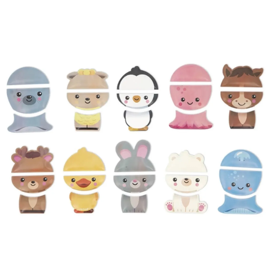 Elk Dier Bestaat Uit 3 Stukken. In De Set Zit Een PinguÏN, Een Walvis, Een Zeehond, Een Octopus, Een Ijsbeer, Een Rendier, Een Schaap, Een Konijn, Een Paard En Een Eend; Dat Zijn 10 Dieren In Totaal, Om In Elkaar Te Zetten Of Steeds Opnieuw Te Combineren! De Stukjes Zijn Geschikt Voor Kleine Handjes En Drijven In Het Water. Eenmaal Nat, Blijven Ze Aan De Tegels Plakken! Een Spel Van Mix &Amp; Match; Ideaal Om Het Bad Een Moment Van Ontspanning En Spel Te Laten Zijn.