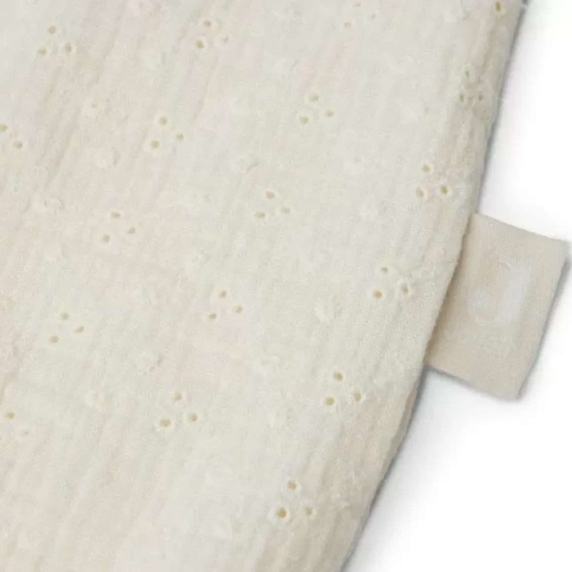 De Tas Is Gemaakt Van Een Zachte Muslin Stof In Een Heerlijk Kleurtje, Ivory. De Buitenkant Van De Tas Heeft Een Lief Embroidery Werkje Van Bloemetjes In De Stof En De Binnenkant Is Gemaakt Van Polyester.