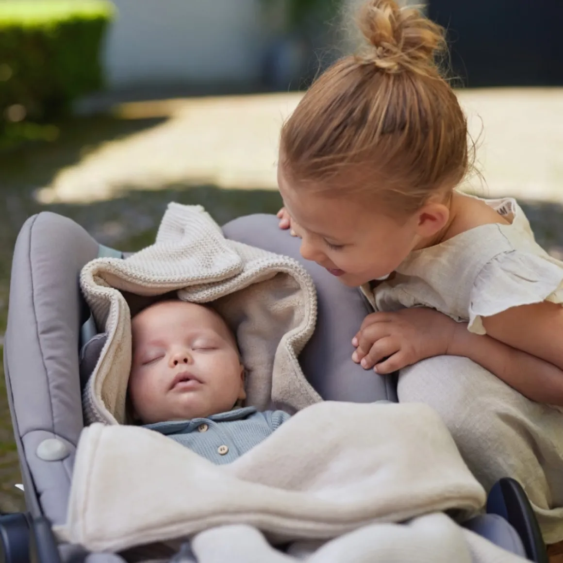 De Gebreide Stof Aan De Buitenkant Van Deze Voetenzak Geeft Het Een Chique Uiterlijk En De Ultrazacht Fleece Aan De Binnenzijde Zorgt Er Voor Dat Je Baby Nog Comfortabeler Ligt. Een Voetenzak Is Echt Een Uitkomst. Je Baby Leg Je Gemakkelijk In De Voetenzak Door De Zak Eerst Helemaal Open Te Ritsen. Ook Haal Je Jouw Baby Makkelijk Uit De Autostoel Door De Voetenzak Helemaal Open Te Ritsen. Van De Bovenkant Maak Je Met Één Drukknoopje Supersnel Een Mutsje, Zodat Ook Het Hoofdje Warm Blijft Zodra Je De Autostoel Buiten Draagt Of Een Wandeling Maakt. Om Er Voor Te Zorgen Dat Je Baby Het In De Auto Niet Te Warm Krijgt Open Je De Rits Van De Zak Zover Als Nodig. Kortom: Een Super Handige Comfortbag Voor Je Baby. De Voetenzak Is Voorzien Van Openingen In De Achterkant Om Het Vastmaken Van De Gordels Extra Makkelijk Te Maken. Het Is Een Universele Voetenzak Voor De Maxi Cosi En Elk Ander Merk Categorie 0 Autostoeltje Met Drie Of Vijfpuntsgordel. Je Kunt Deze Comfortbag Ook In De Kinderwagen Gebruiken. Zo Is Je Baby In Een Mum Warm Ingepakt Voor De Wandeling. De Voetenzak Is Gemaakt Van 60% Katoen En 40% Acryl En Gevoerd Met Fibre Fill. Je Kunt Hem Wassen Op Maximaal 30 Graden. Volg De Instructies Op Het Waslabel.