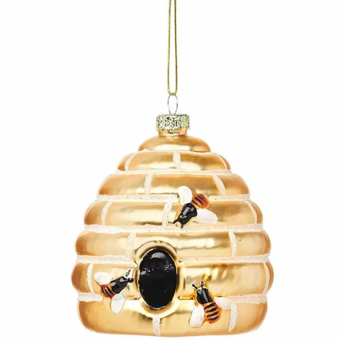 De Kleine Gouden Bijenkorf Is Afgewerkt Met Drie Kleine Bijen En Glitters. Ben Jij Gefascineerd Door Deze Bijzondere Beestjes En Honing Dan Mag Deze Niet Ontbreken In Jouw Kerstboom. Leuk In Combinatie Met De Bijpassende Kersthanger Bij!