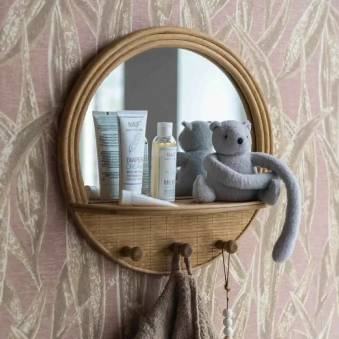 Deze Spiegel Van Kidsdepot Heeft Een Uniek Design En Is Gemaakt Van Bamboe. Geef De Spiegel Een Mooi Plek In Huis, Bijvoorbeeld In De Kinderkamer, Badkamer, Gang Of De Woonkamer. Hij Heeft Een Plankje Of Kleine Spulletjes Op Te Zetten En Daaronder 3 Haakjes Om Het Een En Ander Op Te Hangen.