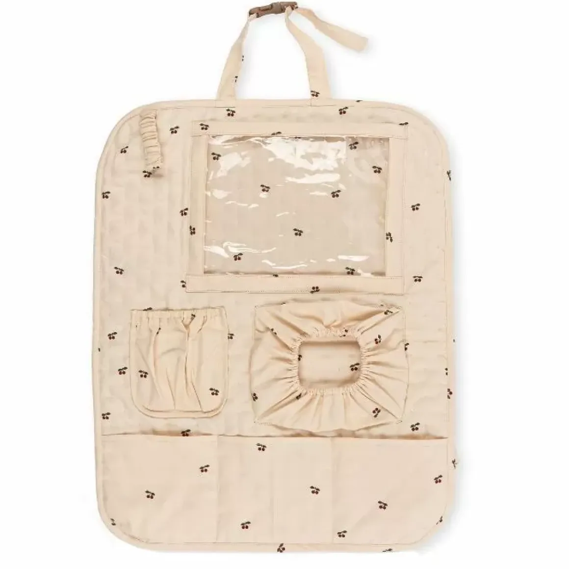 Dankzij De Verstelbare Banden Bevestig Je De Organizer Eenvoudig Aan De Hoofdsteun Of Autostoel. Het Crèmekleurige Ontwerp Met Konges Slojd’S Typische Kersenprint Voegt Een Vleugje Charme Toe Aan Je Auto-Interieur. Met Een Speciaal Vak Voor Een Tablet, Diverse Zakjes Voor Uiteenlopende Spullen En Zelfs Een Pocket Speciaal Voor Vochtige Doekjes, Zorgt Deze Auto Organizer Ervoor Dat Alles Geordend En Makkelijk Te Vinden Is. De Elastische Band Met Klittenbandsluiting Is Ideaal Voor Het Ophangen Van Een Speeltje Of Speenhoes.