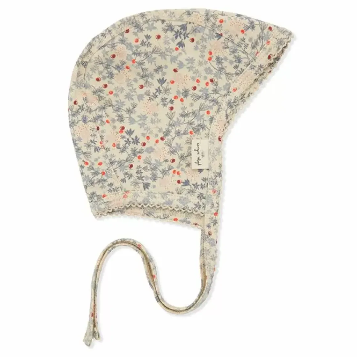 Voor Jouw Baby Geen Koude Oortjes Met Deze Lieve Rose Hip Blue Babymuts Van Konges Slojd.De Bonnet Is Gemaakt Van 95% Biologisch Katoen En 5% Elastaan, Met Een Vleugje Stretch. Ontworpen Met Een Ronde Vorm En Twee Touwtjes Waardoor Het Onder De Kin Kan Worden Vastgemaakt.