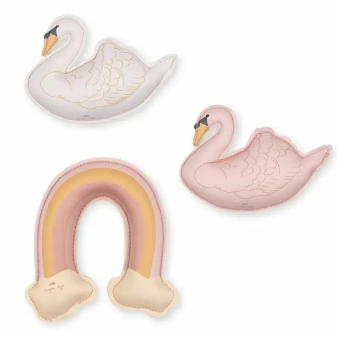 Laat Je Kind Duiken Naar Een Magische Wereld Met De Konges Slojd Duikspeelgoed Zwaan Set! Deze Charmante Set Bestaat Uit Twee Zwanen In De Kleuren Wit En Roze En Een Regenboog, Waardoor Elk Duikavontuur Een Kleurrijke Ontdekkingstocht Wordt.