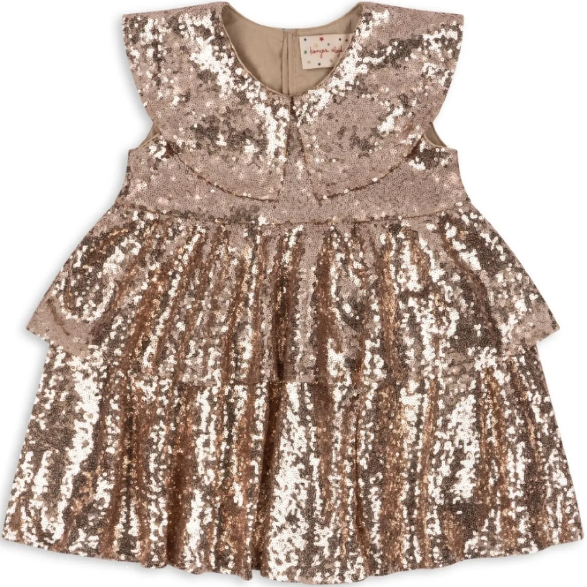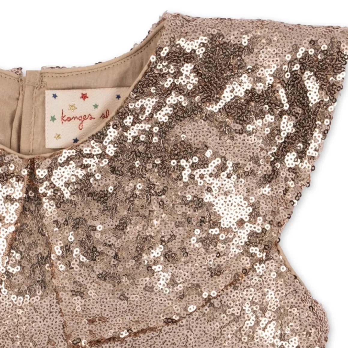 Wat Deze Konges Slojd Starla Jurk Met Pailletten Gold Blush Zo Bijzonder Maakt, Zijn De Ontelbare Glinsterende Pailletten Die De Jurk Bedekken. Elk Lichtstraaltje Wordt Gevangen Door Deze Schitterende Pailletten, Waardoor Een Betoverend Effect Ontstaat Dat Alle Ogen Op Jouw Kleine Prinses Zal Richten. De Parelmoeren Knopen Aan De Achterkant Voegen Een Vleugje Elegantie Toe Aan Deze Feestjurk.