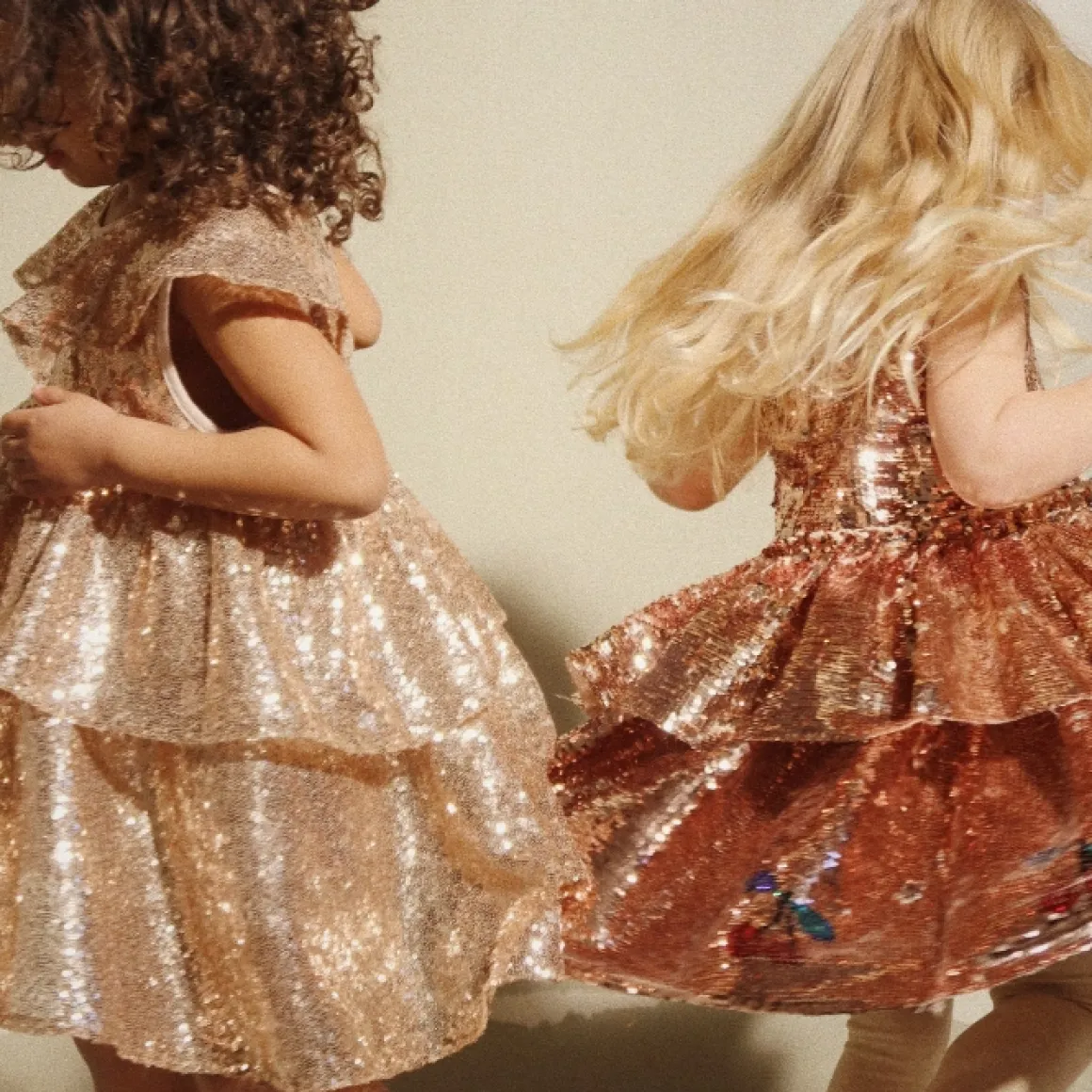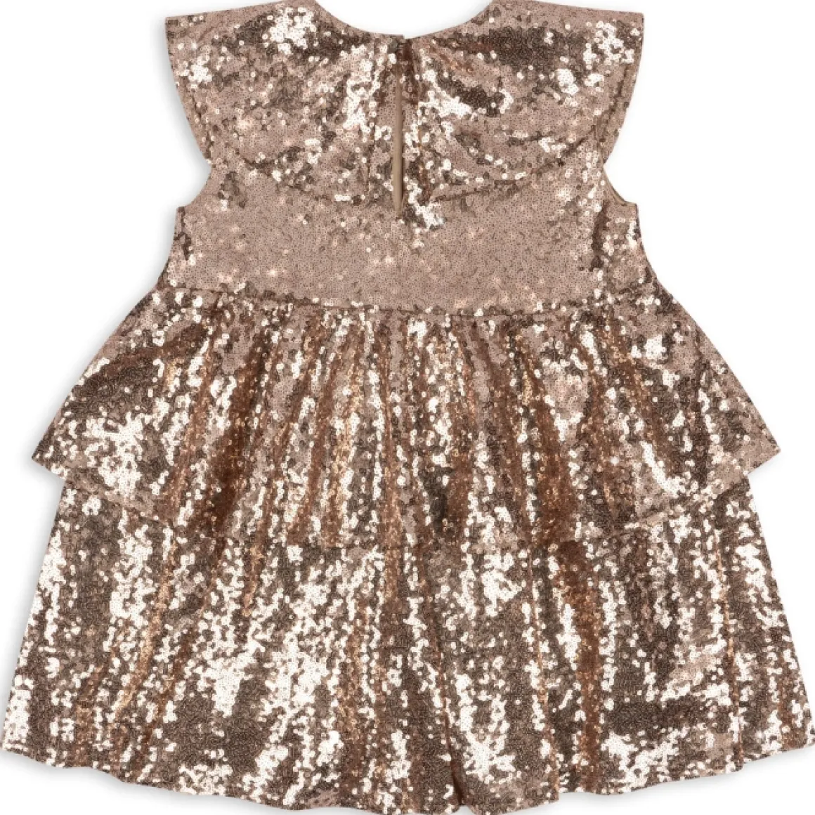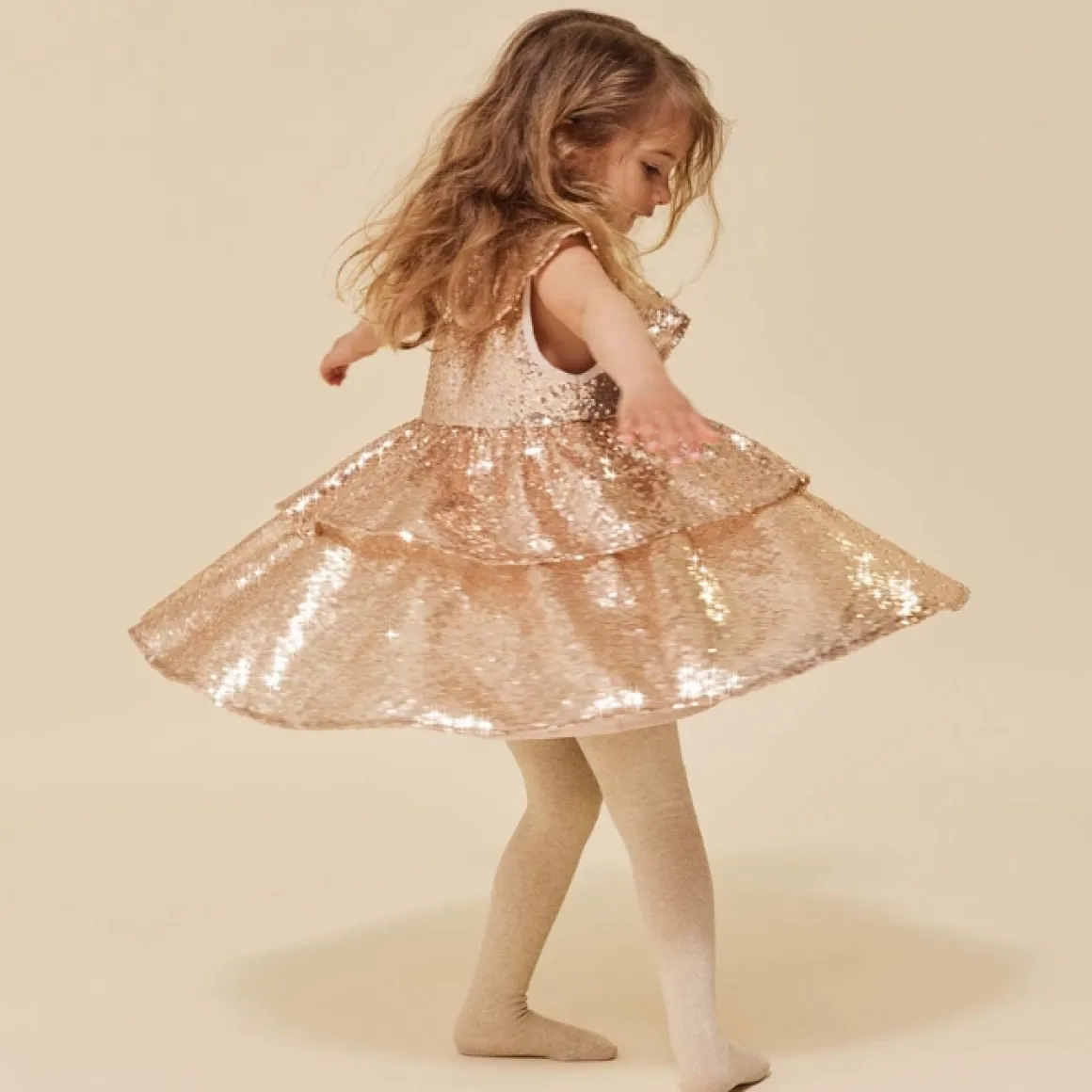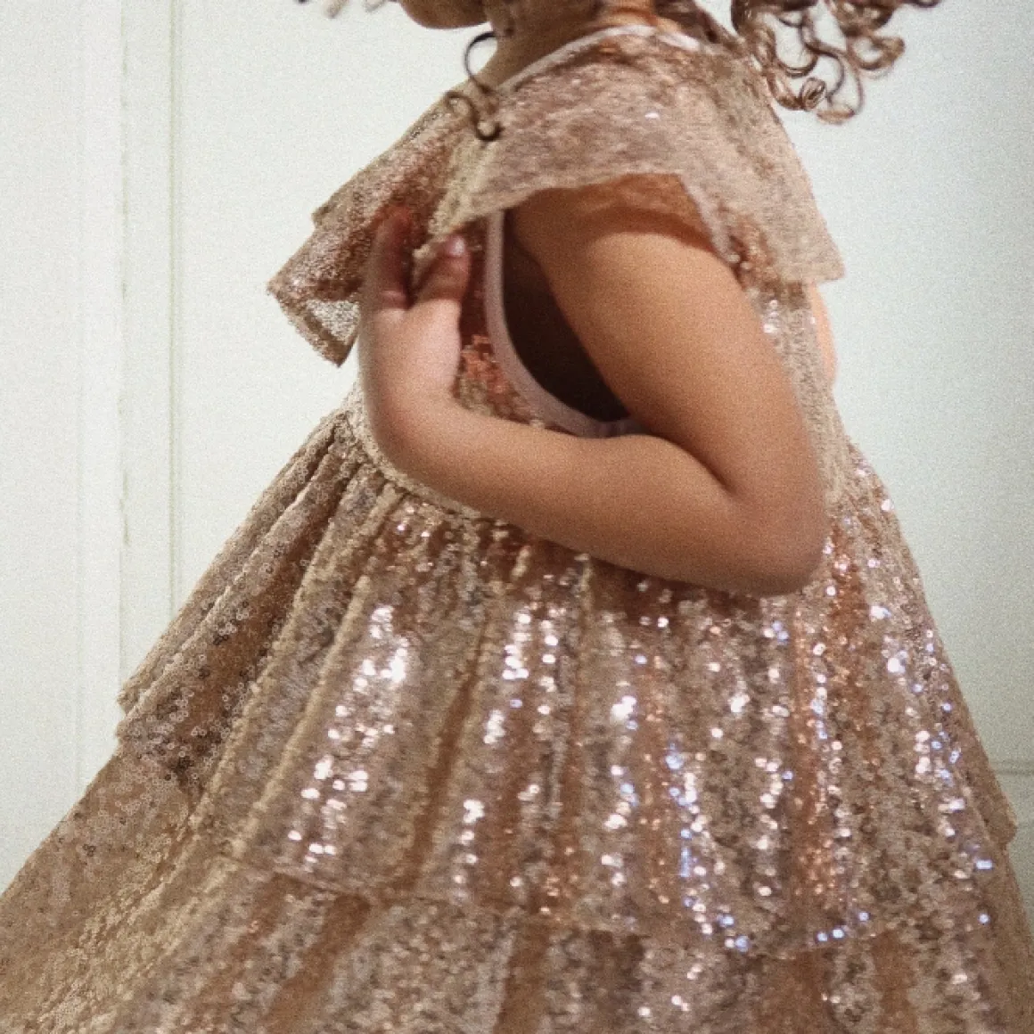 Laat Jouw Kleine Prinses Stralen Als Nooit Tevoren In De Betoverende Starla Jurk Gold Blush, Bezaaid Met Duizenden Pailletten! Deze Jurk Is Gemaakt Van Luchtige Tule En Zacht Katoen. Met Ruches En Een Grote Ronde Kraag Is Deze Jurk Een Opvallende Verschijning Op Een Feestje.