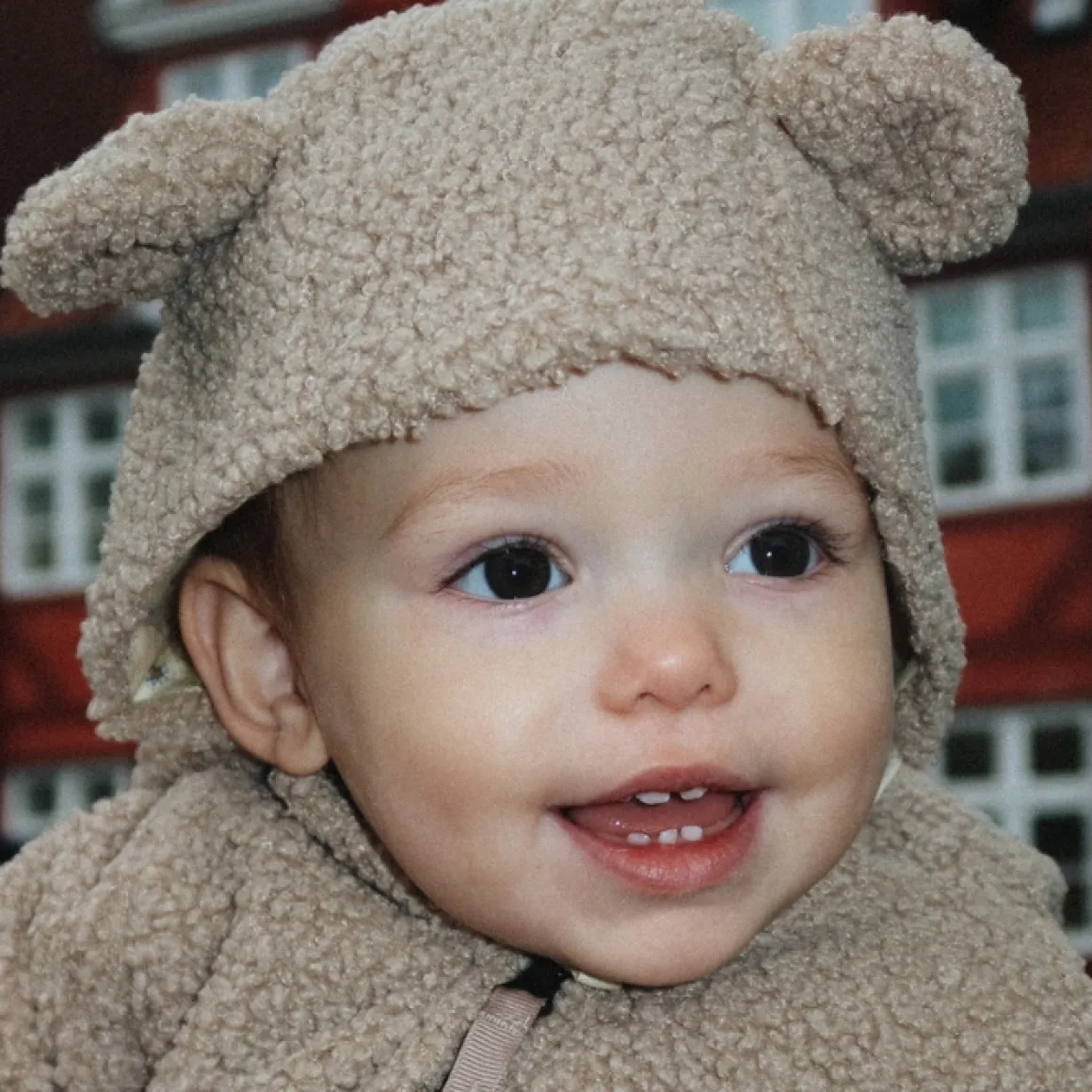 Kom Hier Kleine Teddy Beer! De Konges Slojd Muts Grizz Oxford Tan Is Een Zachte Muts Versierd Met Beren Oortjes. De Handige Touwtjes Onder Aan De Kin Houden De Muts Op Zijn Plaats. De Wintermuts Is Gemaakt Van 100% Polyester En Heeft Een 100% Katoenen Voering.&Nbsp;