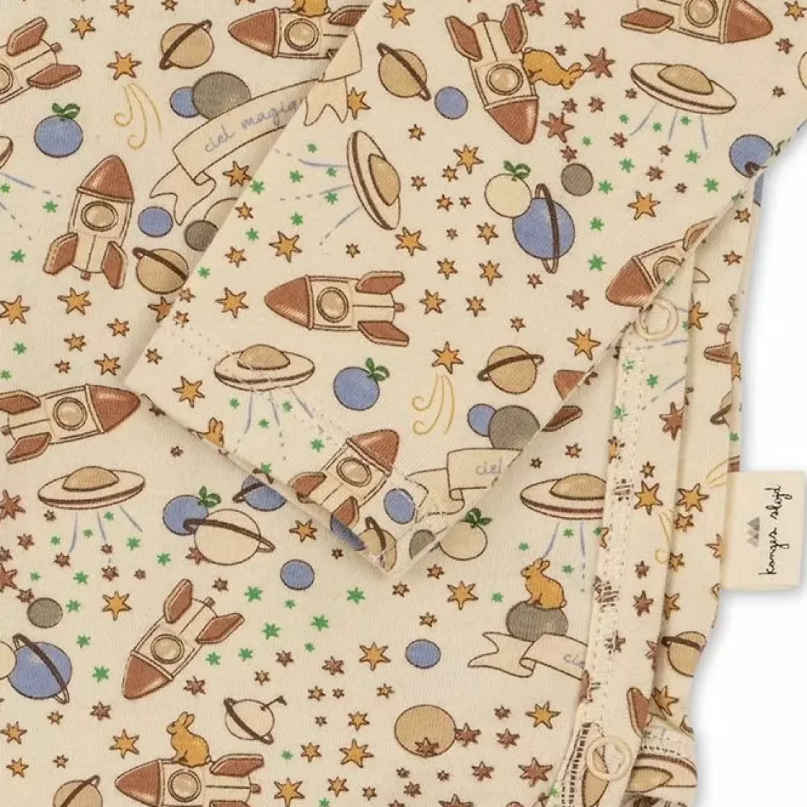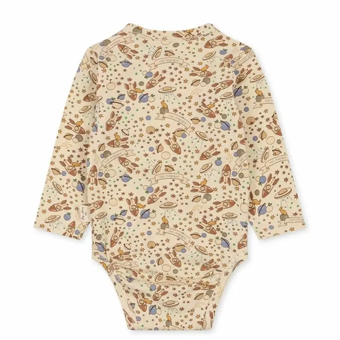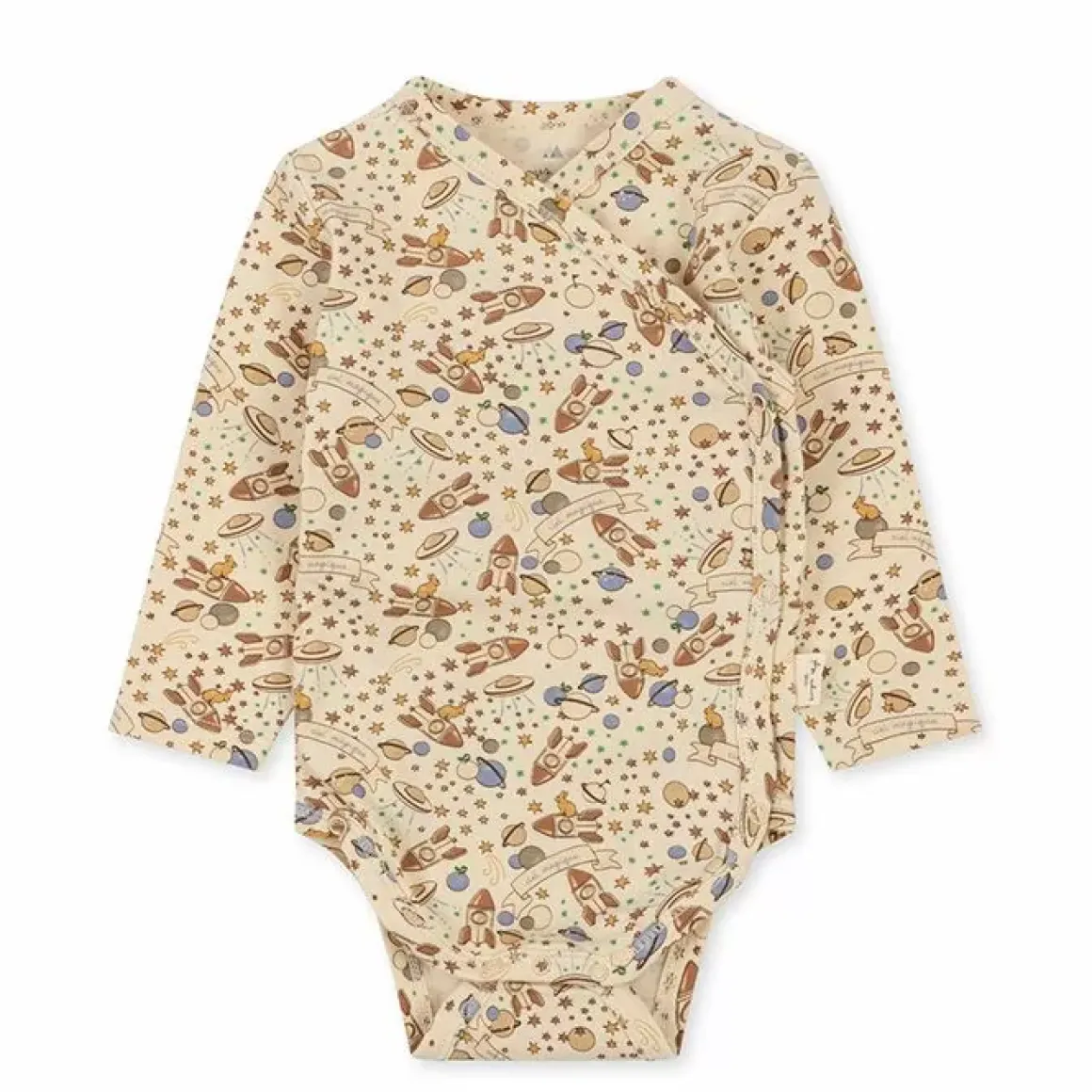 Fan Van Het Deense Merk Konges Slojd? Dan Valt Deze Hippe Overslagromper Ciel Magique Blue Met Lange Mouwen Van Konges Slojd Vast En Zeker Bij Je In De Smaak.