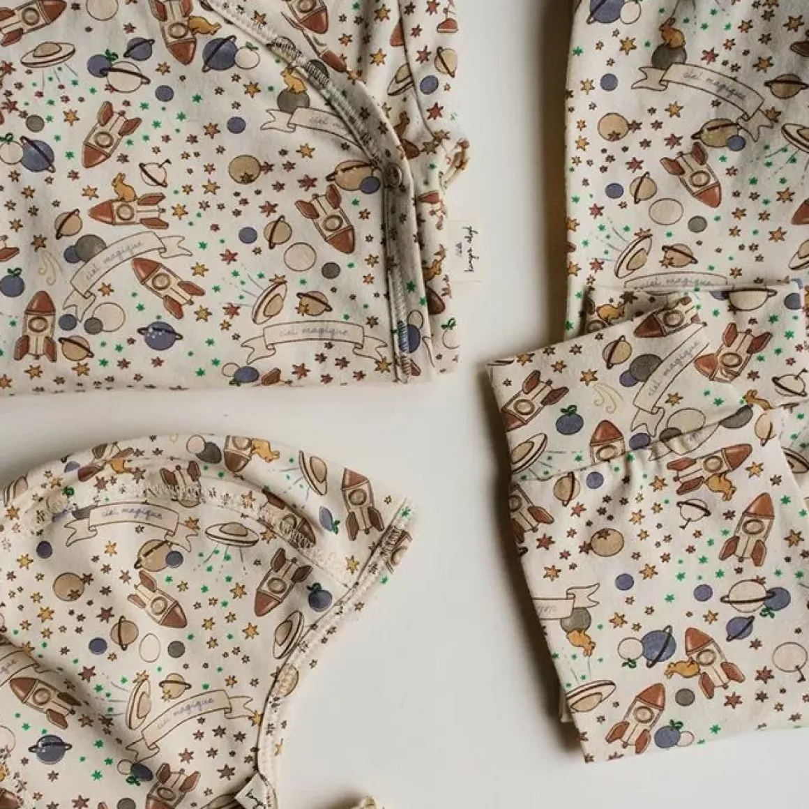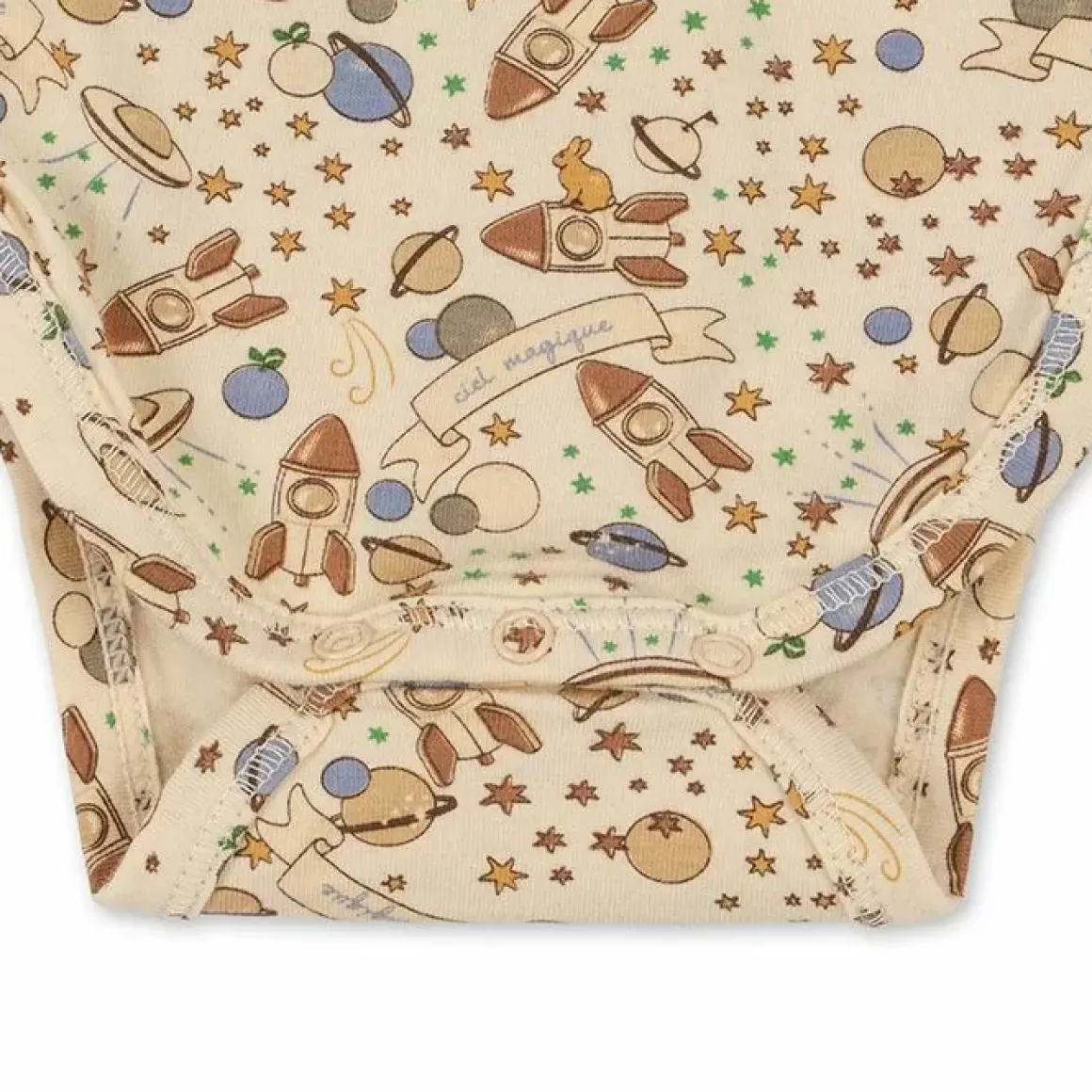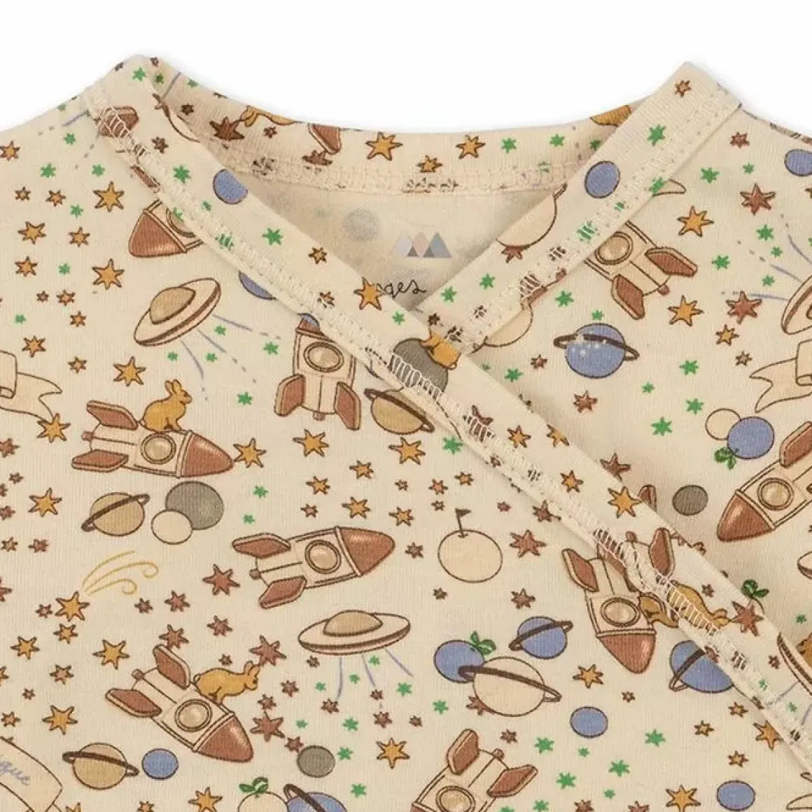 Fan Van Het Deense Merk Konges Slojd? Dan Valt Deze Hippe Overslagromper Ciel Magique Blue Met Lange Mouwen Van Konges Slojd Vast En Zeker Bij Je In De Smaak.