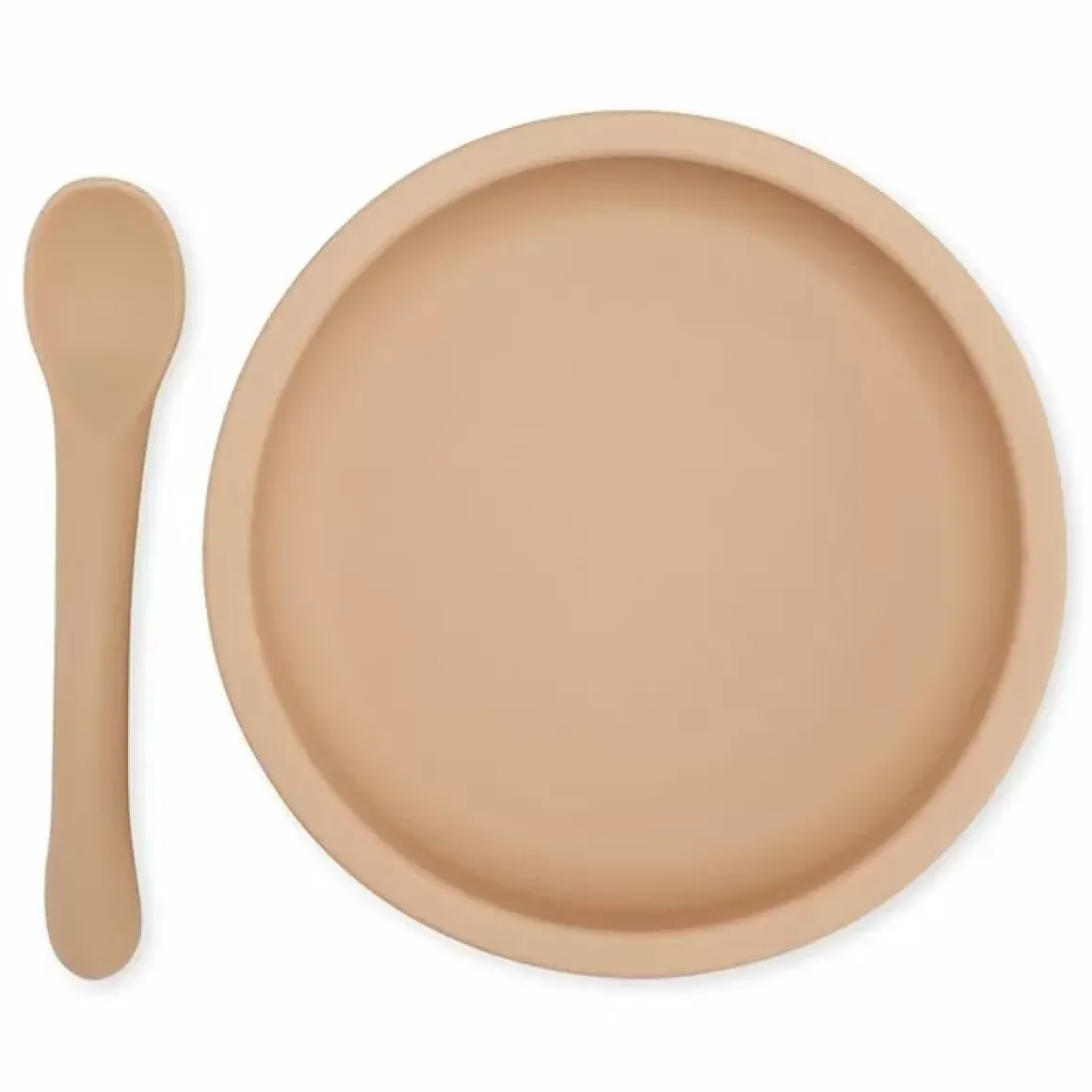 Maak Etenstijd Gemakkelijker Met Deze Leuke Serviesset Rose Sand Bestaand Uit Een Siliconen Kom En Een Lepel Van Het Hippe Merk Konges Slojd.
