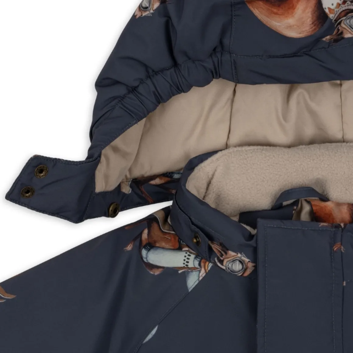 Lekker Buitenspelen In De Sneeuw! Met Dit Skipak Nohr Van Konges Slojd Blijft Je Kleintje Lekker Warm En Droog! Het Skipak Is Waterdicht, Winddicht En Heeft Een Ademend Vermogen, Waardoor Het Ideaal Is Voor De Wintersport. Het Sneeuwpak Heeft Een Warme Fleece Binnenvoering. De Binnenvulling Is Thermolite Vulling Gemaakt Van Gerecyclede Vezels. Het Oppervlak Is Behandeld Met Bionic Finish Eco Coating, Een Zeer Ademende En Waterafstotende Impregnering. De Capuchon Is Afneembaar En Met Knopen Bevestigd. Elastische Manchetten Aan Handen En Voeten Zorgen Ervoor Dat Het Sneeuwpak Goed Op Zijn Plaats Blijft Zitten. Bij De Voeten Is Een Verwijderbare Rubberen Voetlus Bevestigd Zodat De Laarzen Goed Op Hun Plaats Blijven Zitten. Aan De Binnenkant Maken Bretels Het Gemakkelijk Voor Het Kind Om Het Bovenste Deel Van Het Sneeuwpak Uit Te Trekken Als Het Te Warm Wordt Of Naar Binnen Gaat. Skipak Nohr Heeft Een Praktische Hangerlus Aan De Binnenkant. Alle Naden Zijn Bovendien Getapet.