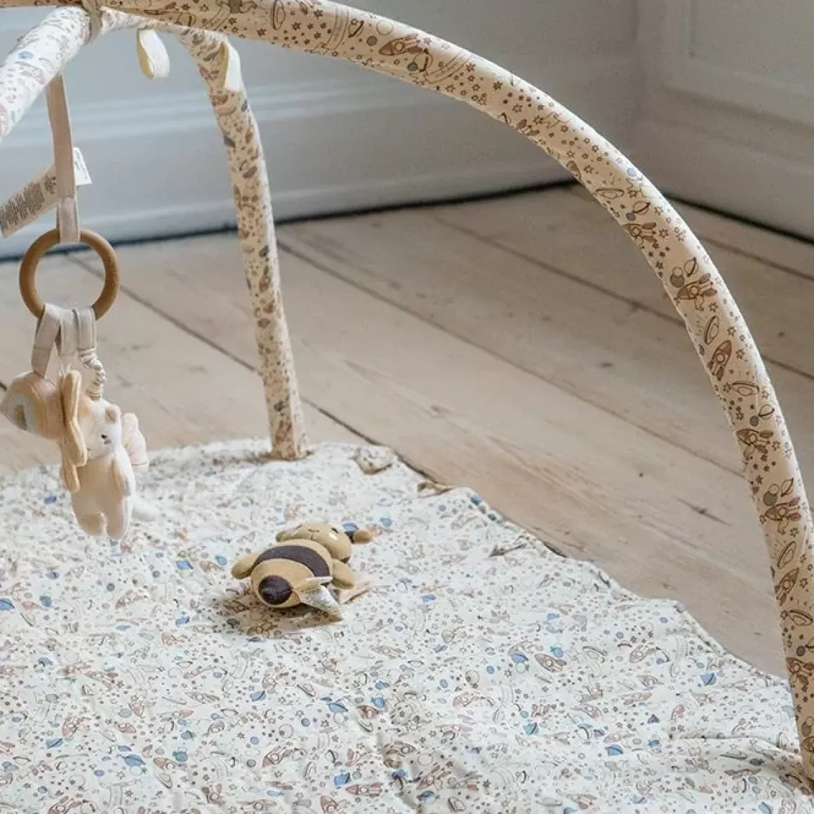Laat Je Kindje Ontdekken En Spelen Op Deze Speelmat Met Bogen Nola Rack Ciel Magique Blue Van Konges Slojd. Voeg Je Eigen Activiteitenspeeltjes Toe.