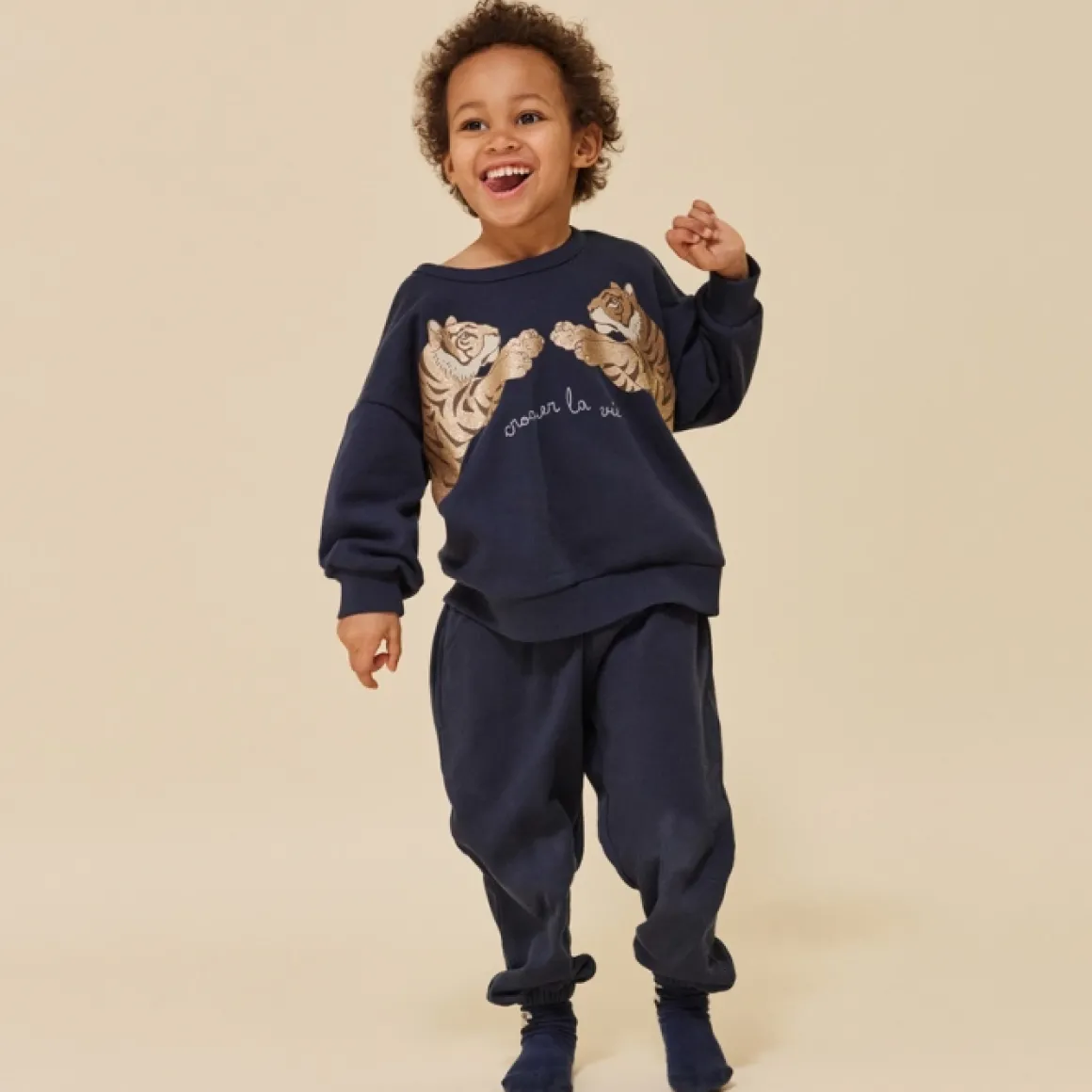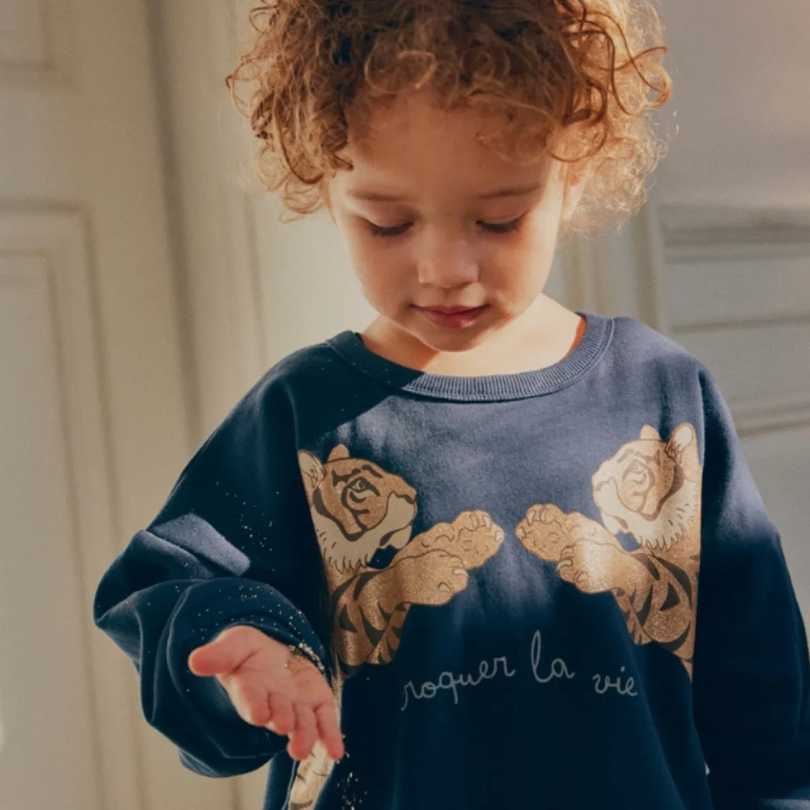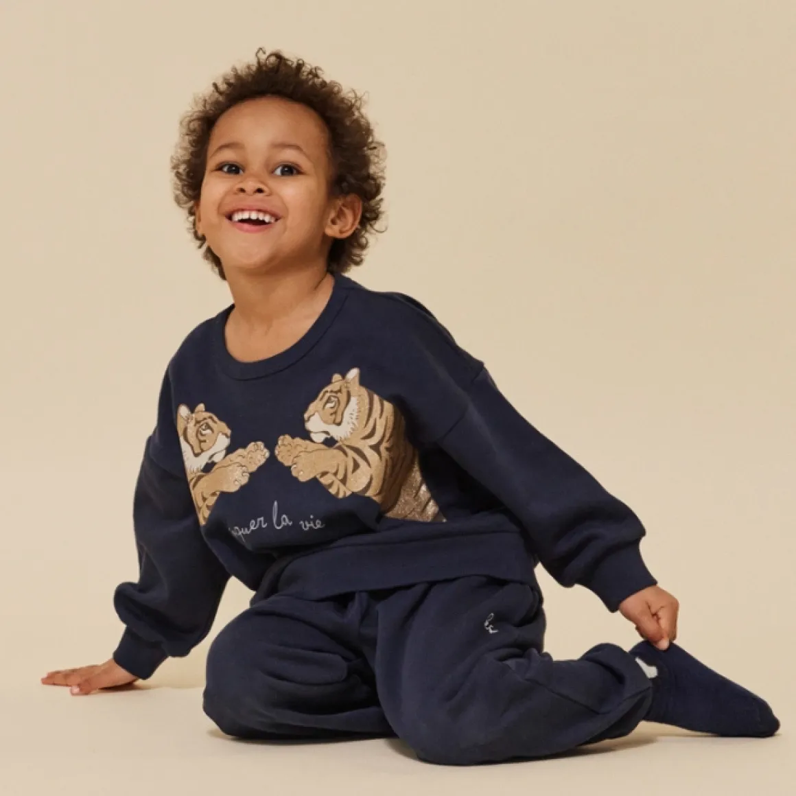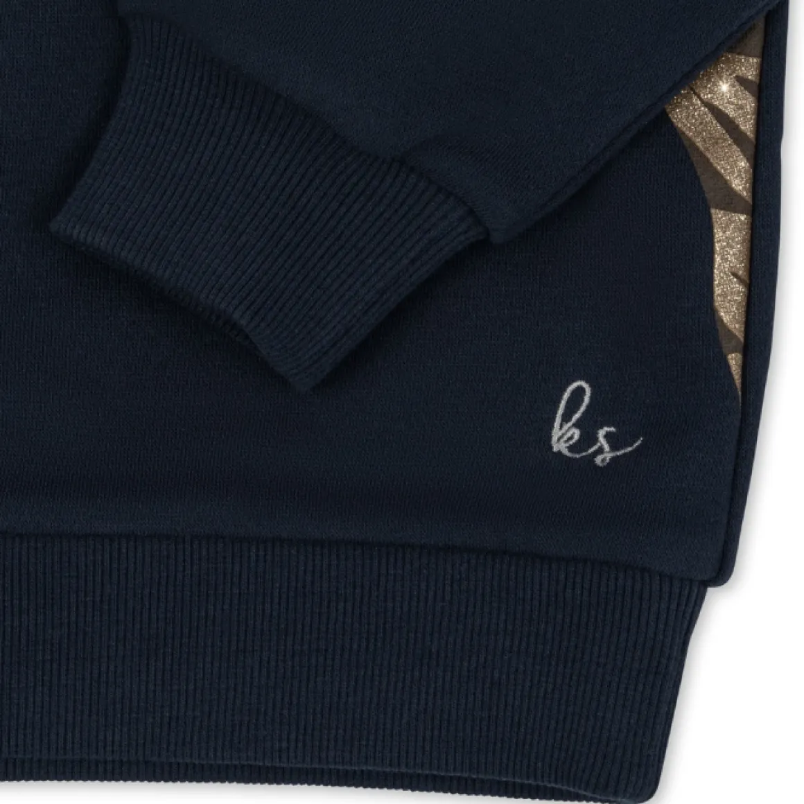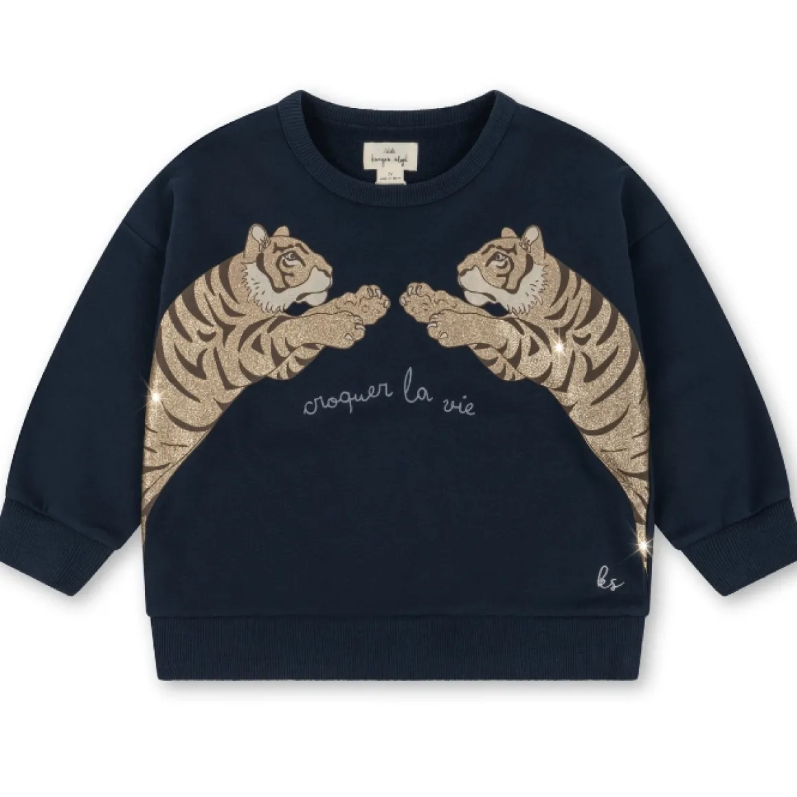 De Konges Slojd Trui Lou Total Eclipse Is Gemaakt Van Het Zachtste Supima-Katoen. Op Het Sweatshirt Is Een Stoere Tijgerprint Gedrukt Met Glitters. Gemaakt Van 95% Supima-Katoen, 5% Elastaan En Wasbaar Op 30 Graden.