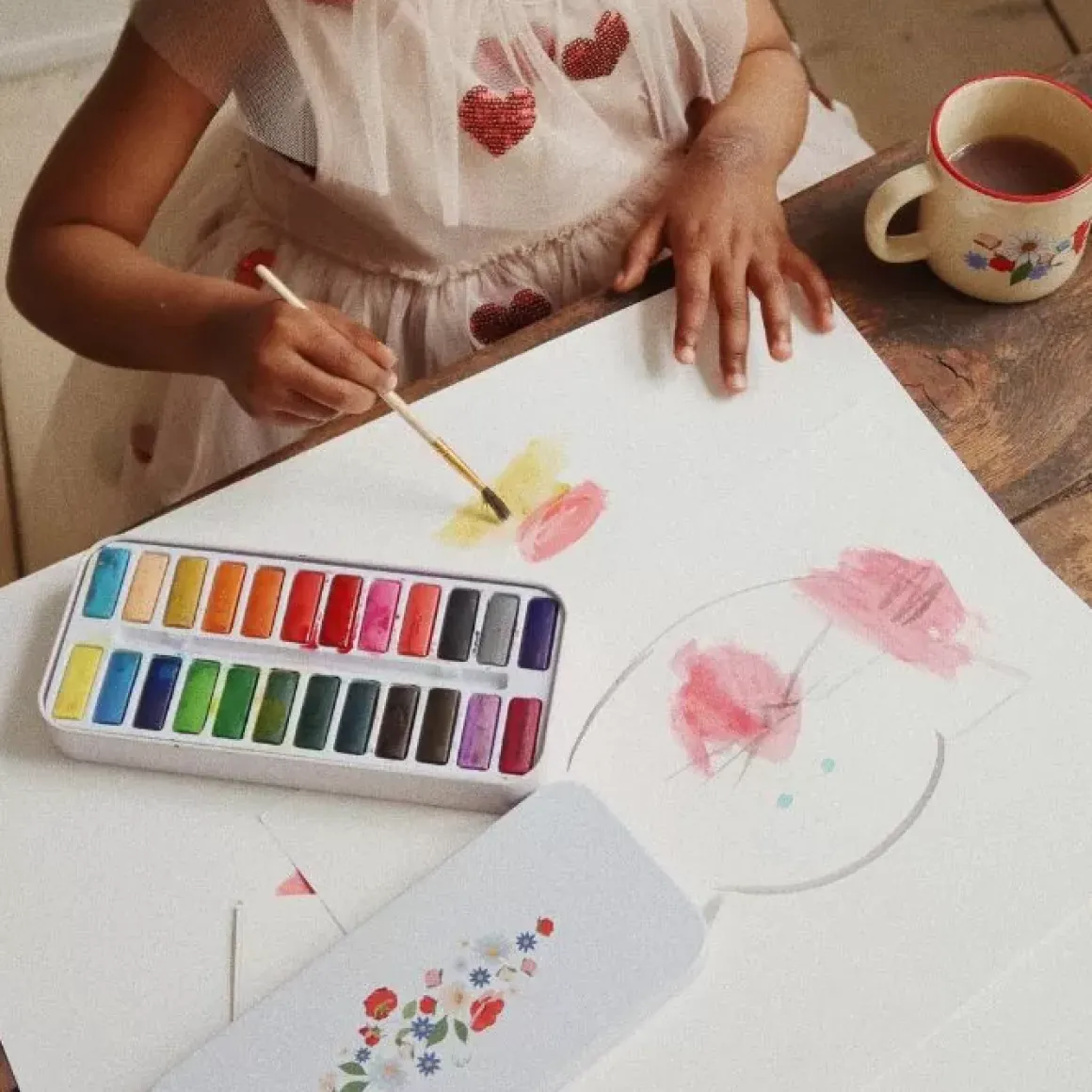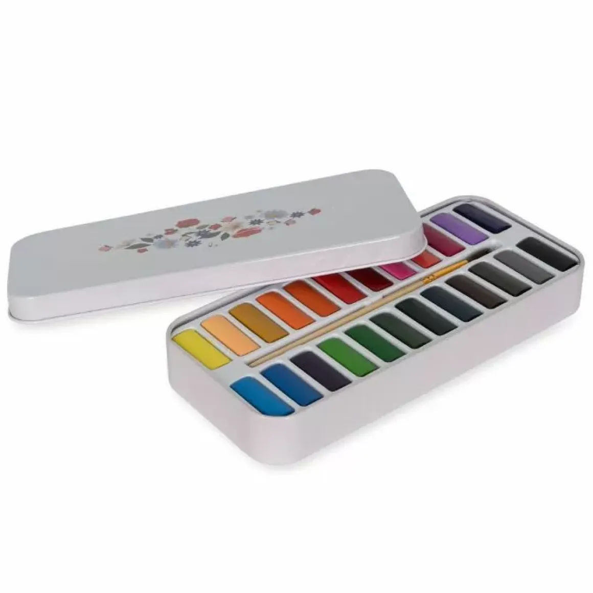 Laat De Creativiteit Van Je Kind De Vrije Loop Met De Konges Slojd Waterverf Multi Mix, Een Prachtige Set Van 24 Waterbasis Kleuren, Verpakt In Een Stijlvolle Metalen Doos Met Een Vintage Bloemenprint Op Het Deksel. Deze Set Nodigt Uit Tot Urenlang Schilderplezier En Stimuleert De Artistieke Expressie Van Je Kind.