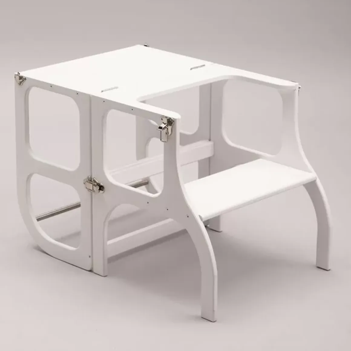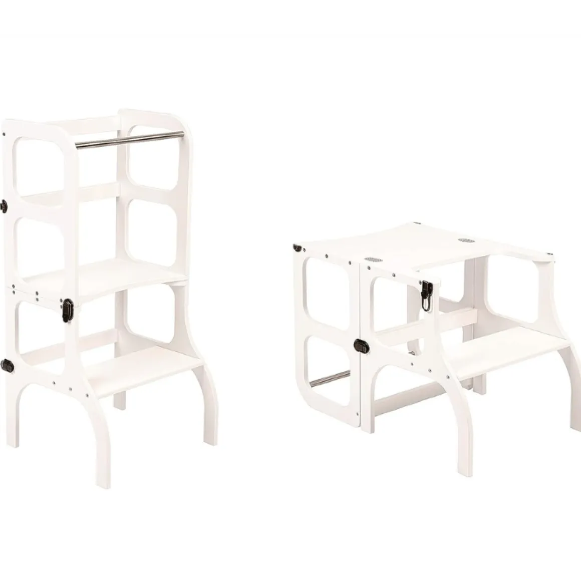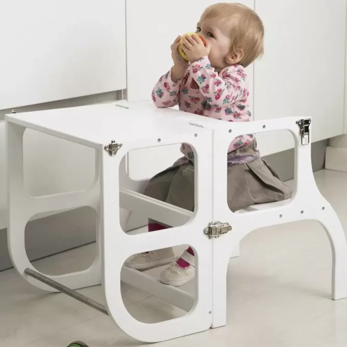 Deze Stevige Leer- En Klimtoren Zorgt Ervoor Dat Je Kindje Zelfstandig En Veilig Kan Ontdekken En Helpen. Niet Alleen Handig Voor In De Keuken, Maar Ook In De Badkamer Of Wanneer Hij Of Zij Naar Buiten Wilt Kijken. Deze Learning Tower Is Extra Bijzonder Omdat Je Deze Variant Kunt Transformeren Tot Een Stoel Met Een Tafeltje Om Aan Te Eten Of Te Spelen.