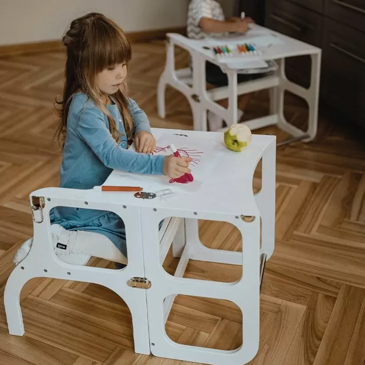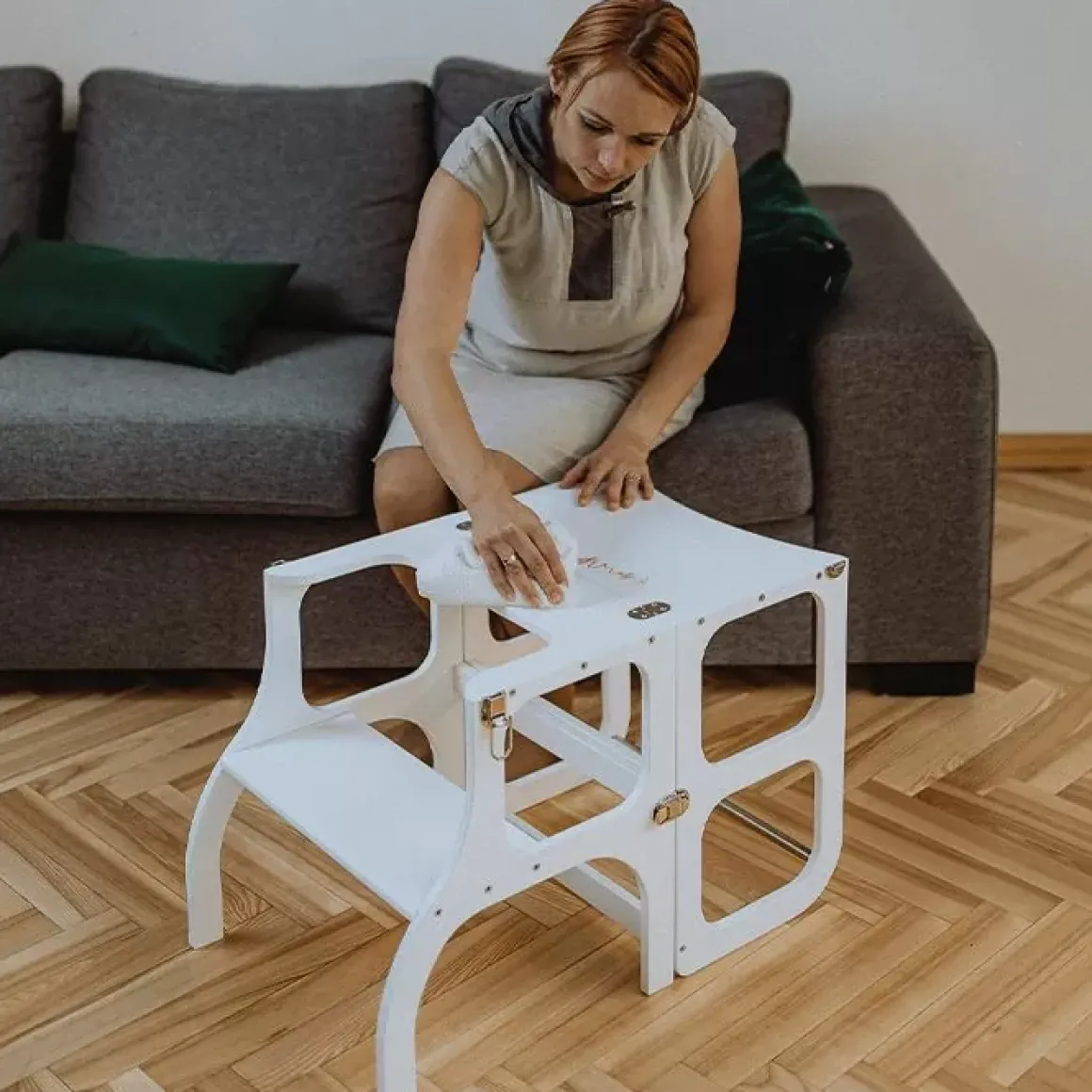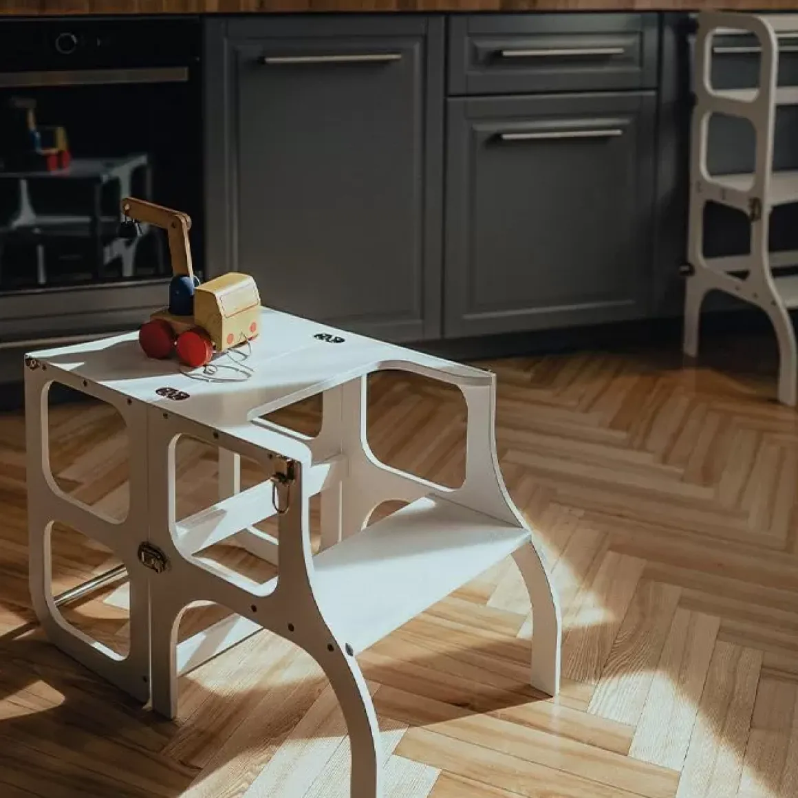 Deze Stevige Leer- En Klimtoren Zorgt Ervoor Dat Je Kindje Zelfstandig En Veilig Kan Ontdekken En Helpen. Niet Alleen Handig Voor In De Keuken, Maar Ook In De Badkamer Of Wanneer Hij Of Zij Naar Buiten Wilt Kijken. Deze Learning Tower Is Extra Bijzonder Omdat Je Deze Variant Kunt Transformeren Tot Een Stoel Met Een Tafeltje Om Aan Te Eten Of Te Spelen.