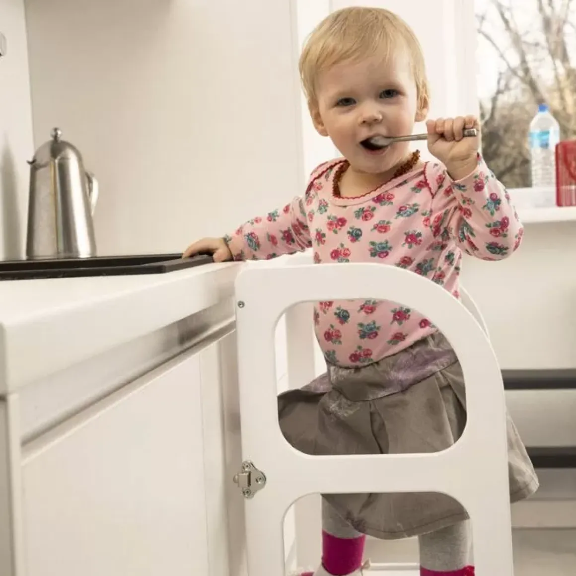 Herken Je Dat Een Nieuwsgierig Kindje Aan Je Been Terwijl Je Staat Te Koken? Betrek Je Kleintje Eenvoudig Bij Dagelijkse Bezigheden Met De Learning Tower Step’N Sit Wit Van Ette Tete.