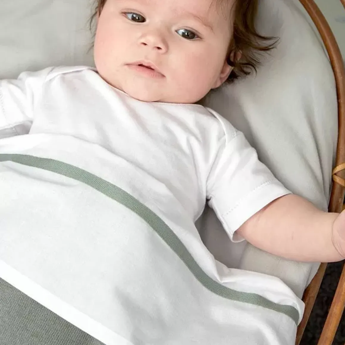 Slaap Kindje Slaap! Jouw Kleintje Zal Heerlijk Slapen Onder Dit Witte Lakentje Van 100% Katoen Met Een Forest Green Kleurige Bies.