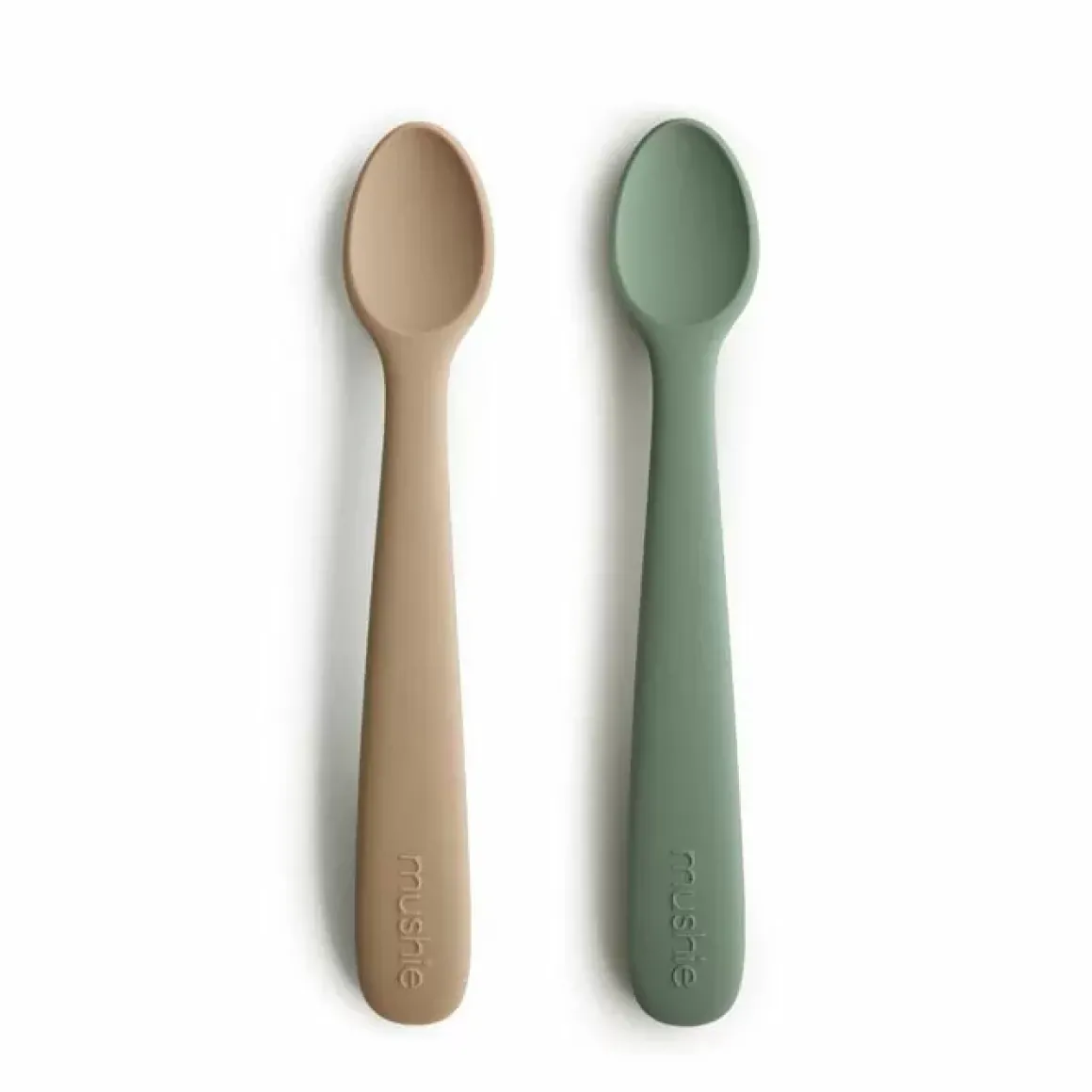 Laat Je Baby Smullen Van Zijn Of Haar Eerste Hapjes Met Deze Siliconen Voedingslepels Dried Thyme/Natural Van Mushie. Het Zachte Siliconen Uiteinde Beschermt Het Gevoelige Tandvlees En Doorkomende Tandjes.