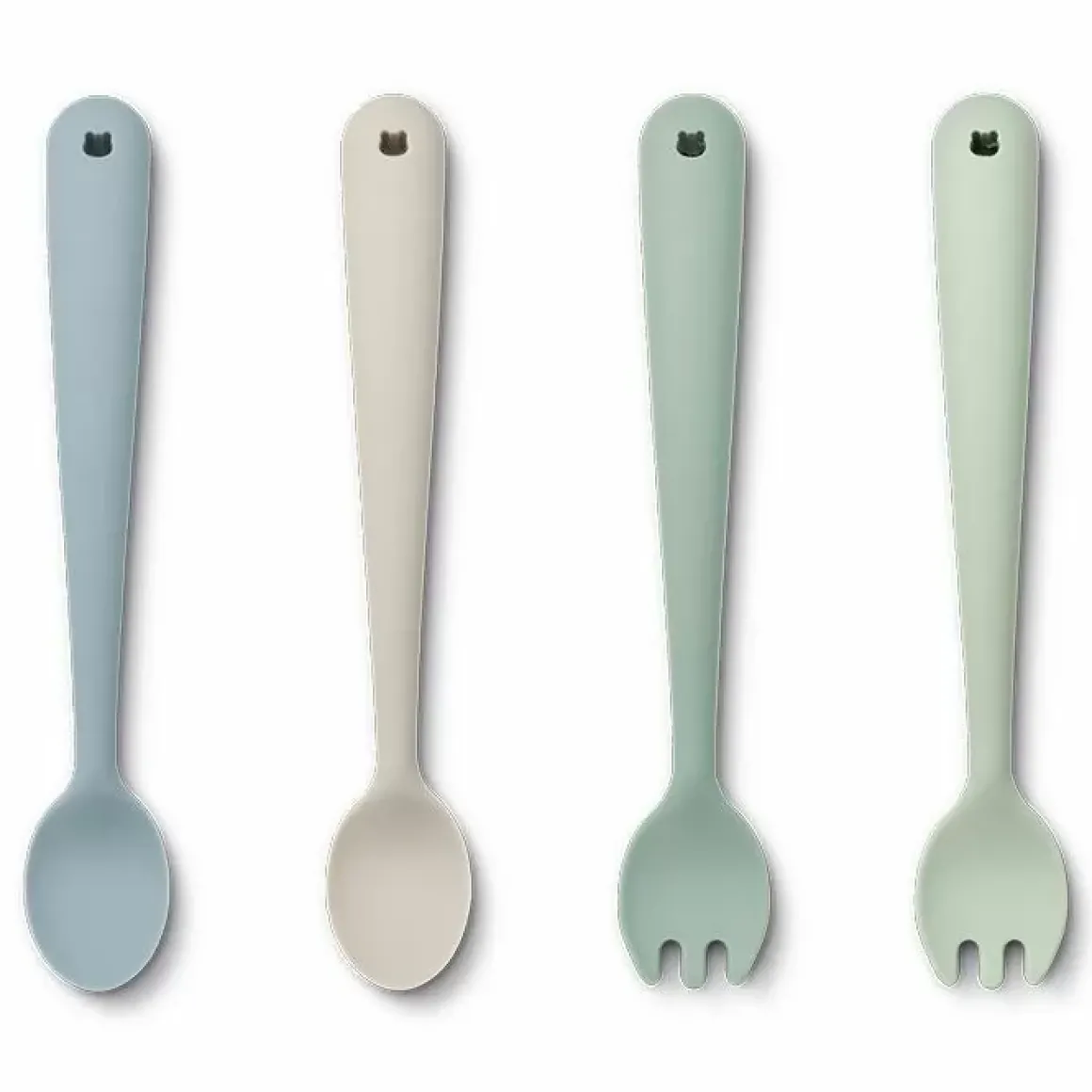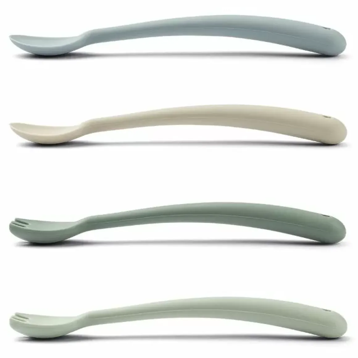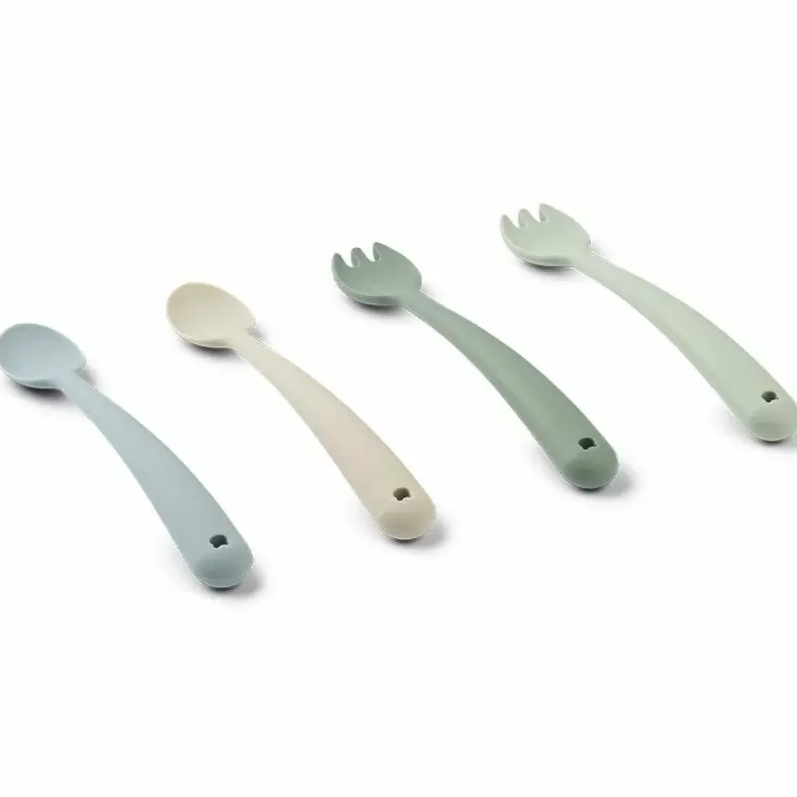 De Liewood Bestekset Shea Dusty Mint Mix (4St) Is Bestek Voor Baby’S Van Zacht Siliconen En Helpen Met De Overgang Naar Vast Voedsel.
