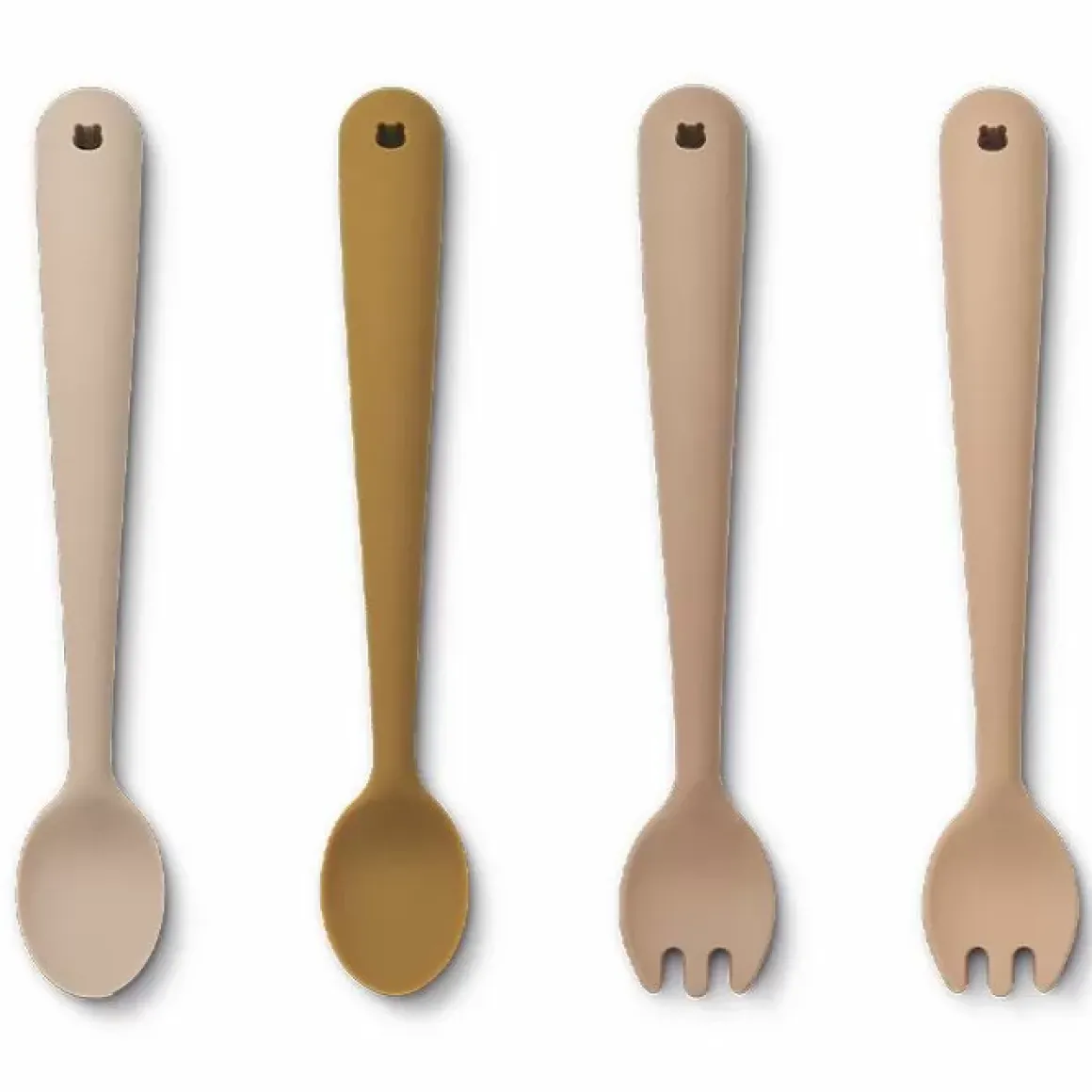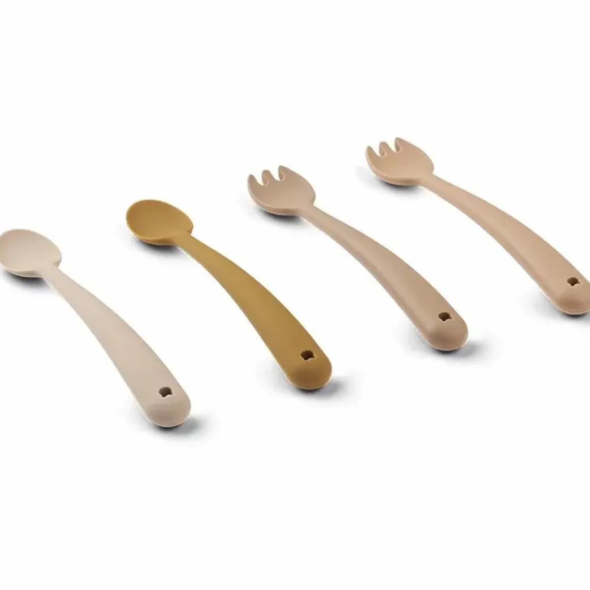 De Liewood Bestekset Shea Rose Multi Mix (4St) Is Bestek Voor Baby’S Van Zacht Siliconen En Helpen Met De Overgang Naar Vast Voedsel.