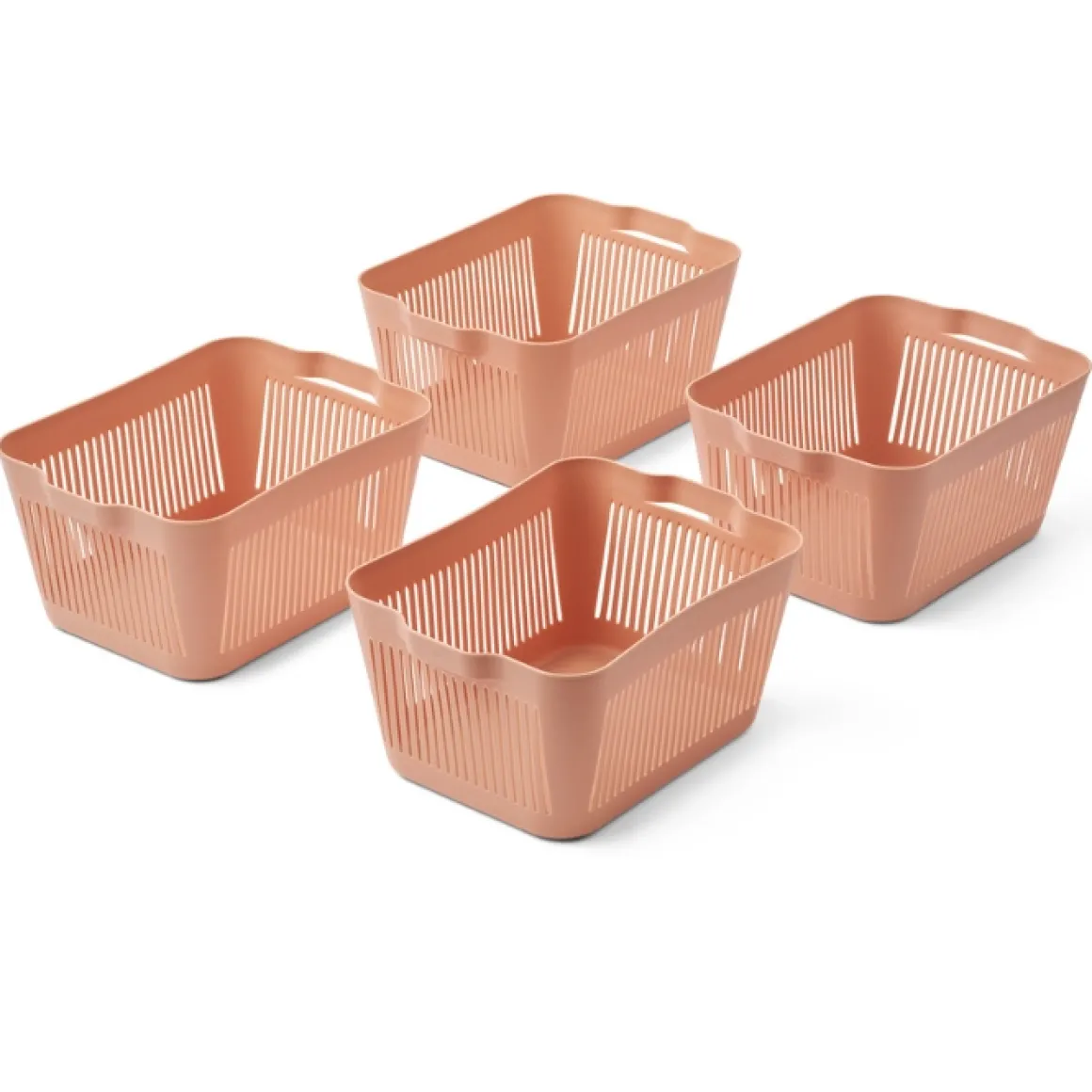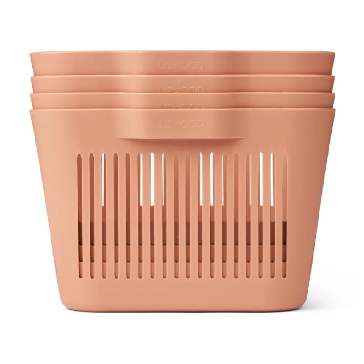 Pak De Chaos In Huis Of Op Je Werk Aan Met Deze Gerecyclede Plastic Mandjes Met Handvaten Van Liewood. De Veelzijdige Makeeva Manden Zijn De Perfecte Oplossing Voor Open En Toegankelijke Opslag. Ze Zijn Stapelbaar Als Ze Leeg Zijn En Passen Gemakkelijk In Opbergmanden Als Je Ze Wilt Opbergen. Perfect Voor Beauty Accessoires, Kleiner Speelgoed En Nog Veel Meer. Dit Simplistische En Geperforeerde Ontwerp Heeft Handvatten En Is Gemakkelijk Te Verplaatsen In Je Huis Voor Zowel Kinderen Als Jezelf. De Set Bevat 4 Kleinere Manden Gemaakt Van 60% Gerecycled Pp.