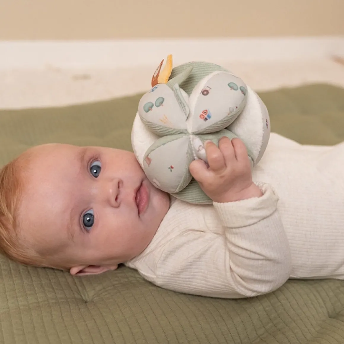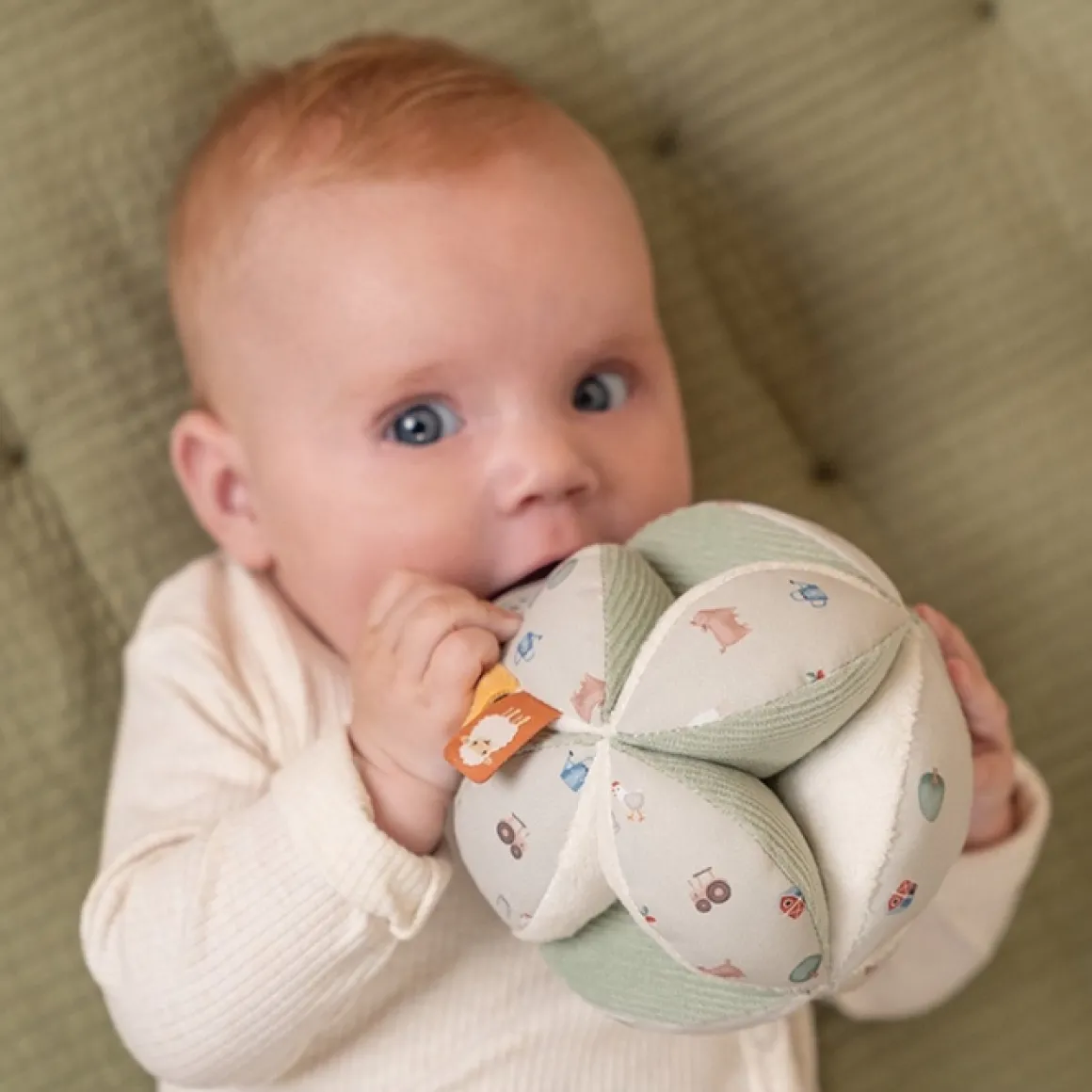Probeer De Bal Maar Te Pakken! Deze Grijpbal Met Zijn Interessante Vorm Zorgt Voor Een Geweldige Uitdaging Voor Je Kleintje. De Vlakken Van Verschillende Texturen En Patronen Nodigen Uit Om Te Grijpen En Te Verkennen. De Bal Is Gemakkelijk Op Te Pakken Voor Kleine Handjes En Het Vrolijke Geluid Van Het Rammelende Belletje Beloont Je Baby’S Inspanning. Op Het Mooie Decor Van Little Farm Zullen De Makkelijk Vast Te Pakken Verschillende Leuke Labels De Zintuigen Prikkelen, Grip Ontwikkelen En Je Baby Flink Bezig Houden In De Box. Geschikt Voor Baby’S Vanaf 0.