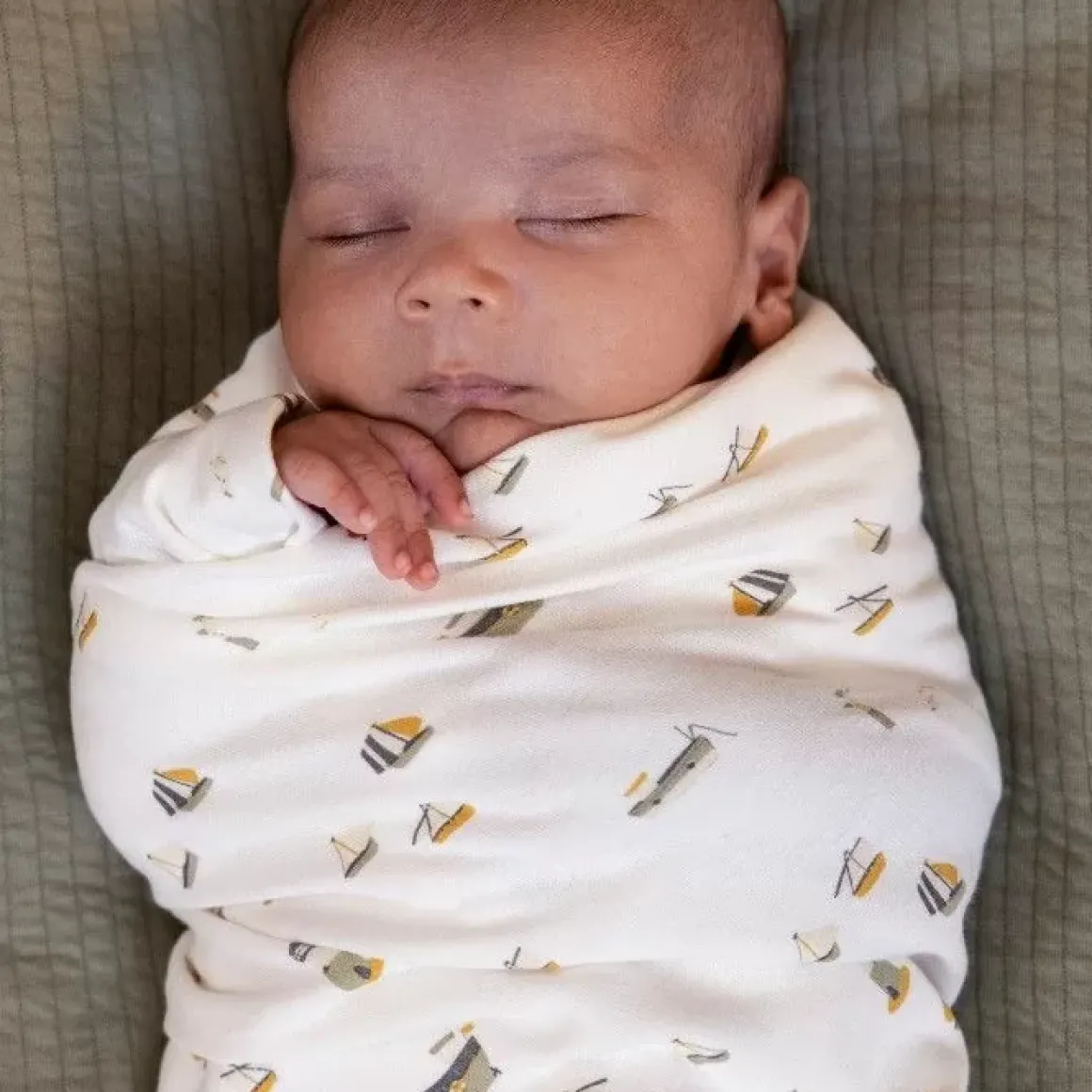 De Grote Little Dutch Hydrofiele Doek Sailors Bay White Is Een Echte Must-Have Voor Je Kindje. Inbakeren, Afdrogen, Luchtig Lakentje, Een Echte Multifunctionele Doek!