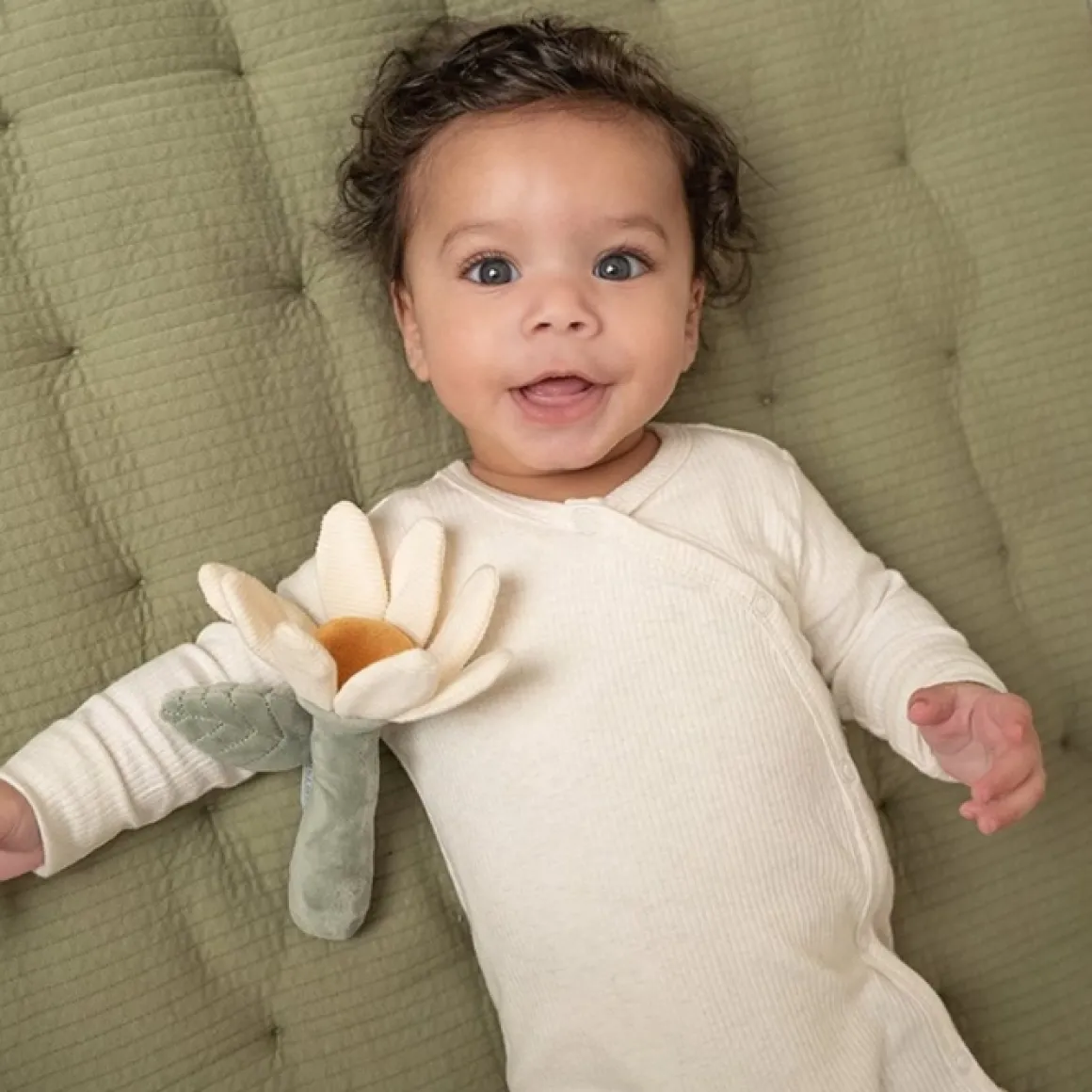 Hoe Schattig Is Deze Rammelaar In De Vorm Van Een Bloem Uit De Little Farm Collectie! Als Je Er Mee Speelt Hoor Je Een Plezierig Geluidje. In De Blaadjes Van De Bloem Is Een Knisper Verstopt Voor Extra Plezier. De Rammelaar Stimuleert De Hand-Oogcoördinatie, Is Van Heerlijk Zacht Materiaal Gemaakt En Kan Makkelijk Door Kleine Kinderhandjes Vastgepakt Worden.