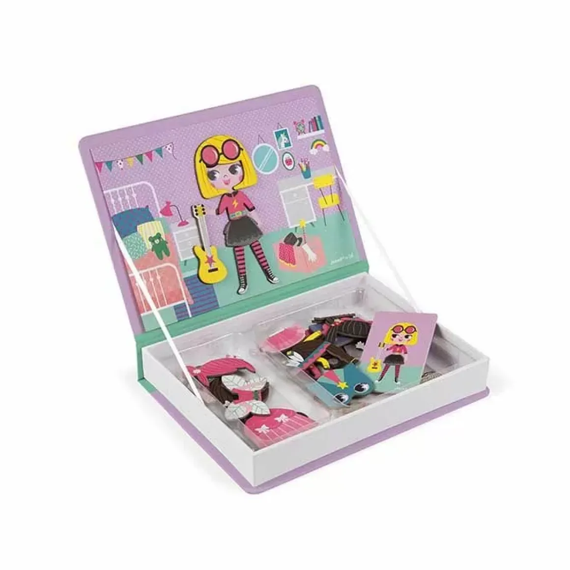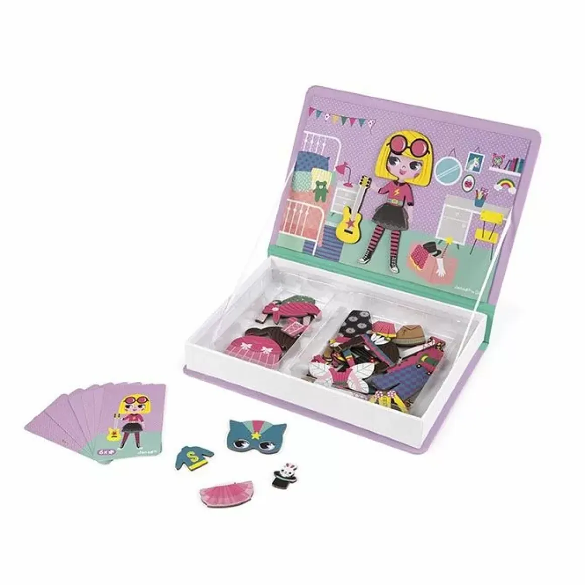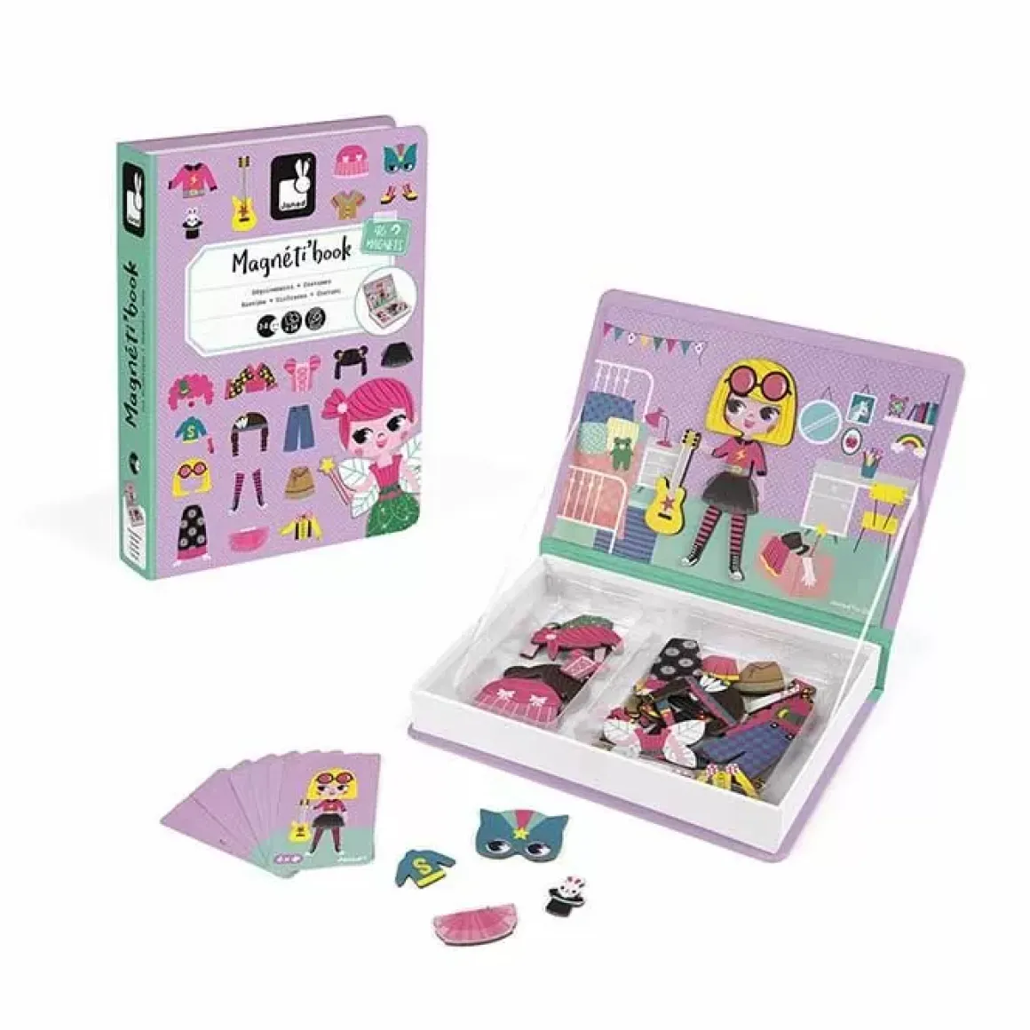 Dit Magnetische Educatieve Spel Magnetibook Verkleedfeest Meisje Van Het Merk Janod Bestaat Uit 46 Magneten En 8 Kaarten En Is Gemaakt In De Vorm Van Een Boek.