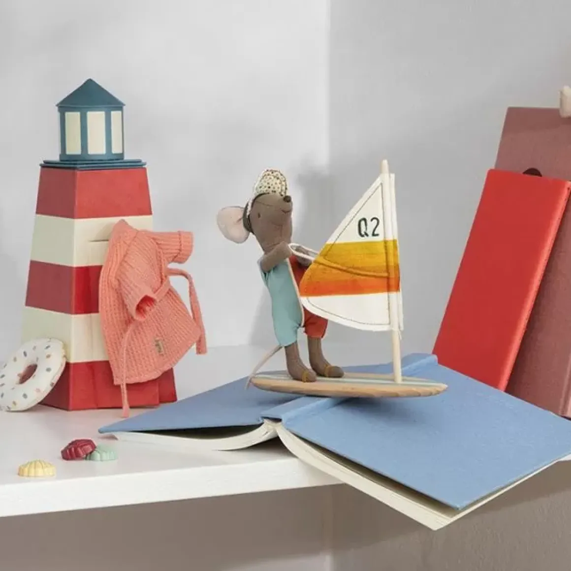 Vakantie Tijd! Deze Strandmuis (Grote Broer) Op Surfplank Van Maileg Is Helemaal Klaar Voor Een Dagje Strand.