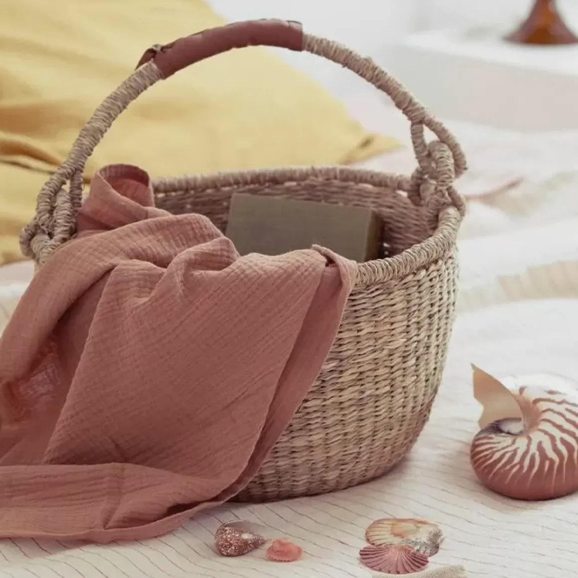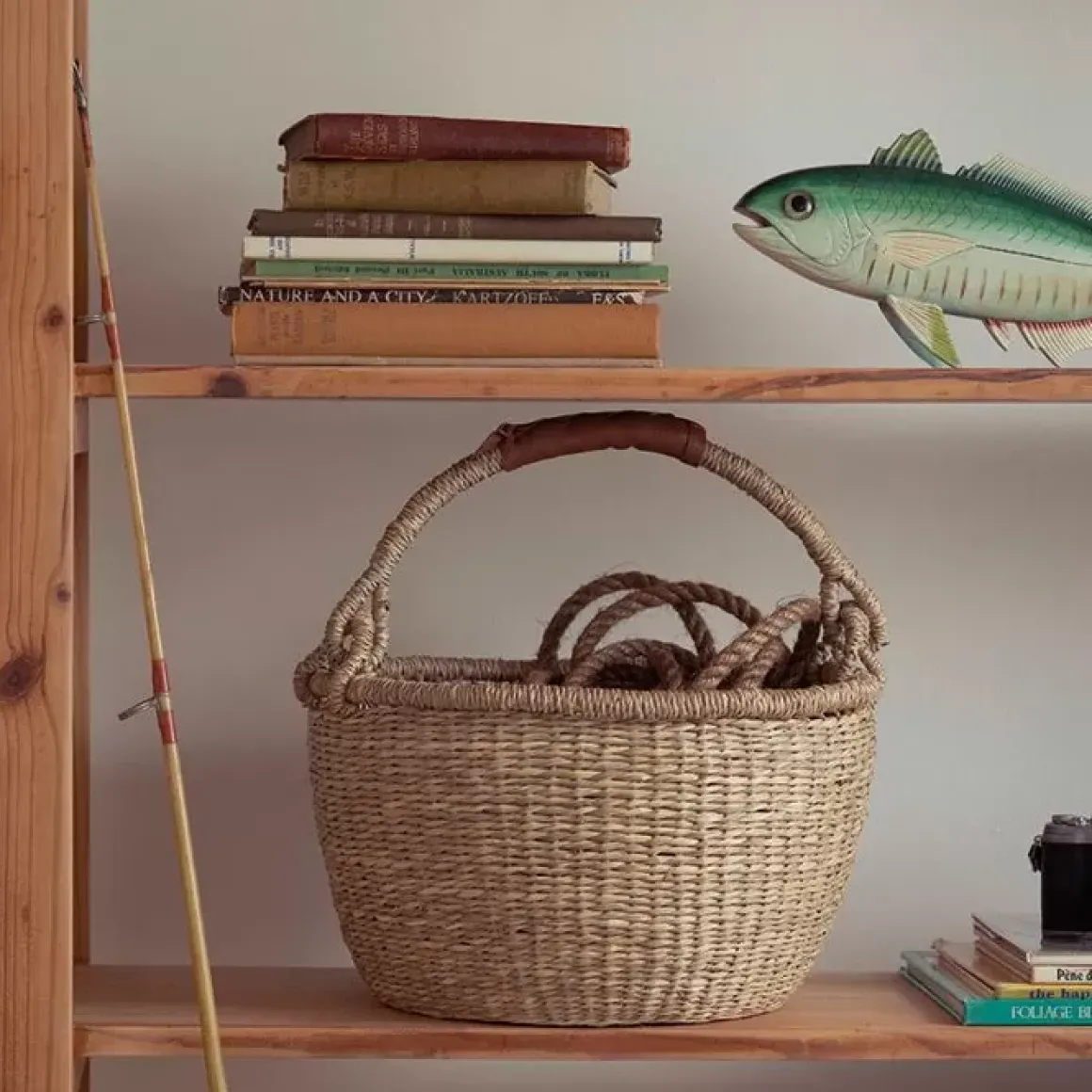 De Elegante Bolga Mand Van Olli Ella Kun Je Voor Alles Gebruiken! Je Markt Boodschappen Of Als Fruitschaal In Huis.De Handgeweven Mand Is Gemaakt Van Natuurlijk Zeegras En Heeft Een Stevige Oranje Riem Over De Handvatten Heen.