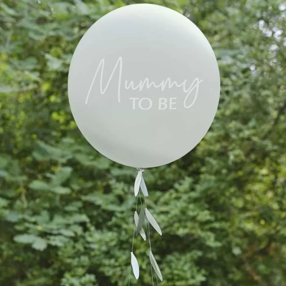 Laat De Moeder In Spé Zich Extra Speciaal Voelen Met Deze Prachtige Saliegroene Babyshowerballon Met Prachtige Ballonstaart. De Perfecte Versiering Bij Een Saliegroene Babyshower.