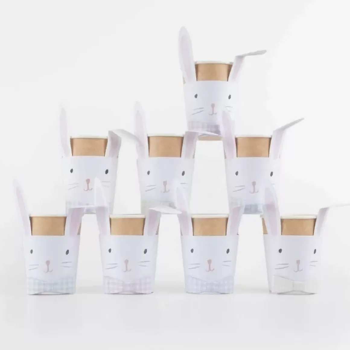 Deze Schattige Easter Bunny Bekertjes Van Meri Meri Zullen Gegarandeerd Een Lach Toveren Op De Gezichten Van Je Gasten. De Set Van Acht Bekertjes Heeft Vrolijke Konijnenoren En Is Versierd Met Zachte Pastelkleurige Strikken, Waardoor Ze Perfect Zijn Voor Elk Paasfeest Of Lentebrunch. Deze Papieren Bekertjes Zijn Niet Alleen Een Genot Om Naar Te Kijken, Maar Ook Praktisch Voor Sapjes, Water Of Andere Paas Drankjes. Combineer Ze Met Andere Items Uit De Meri Meri Paascollectie Om Je Feestelijke Tafel Compleet Te Maken!